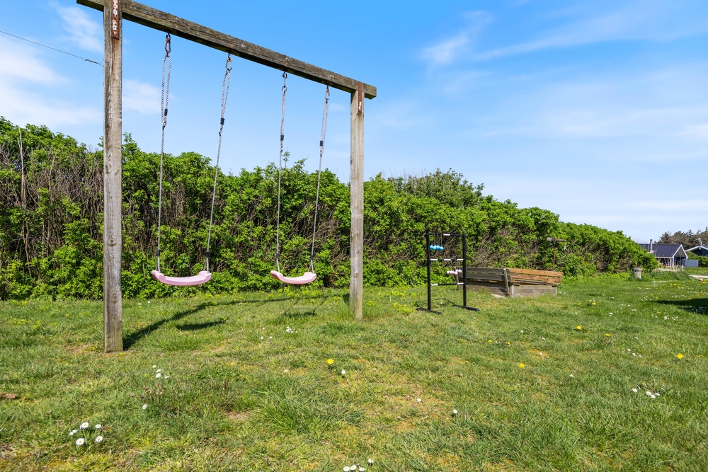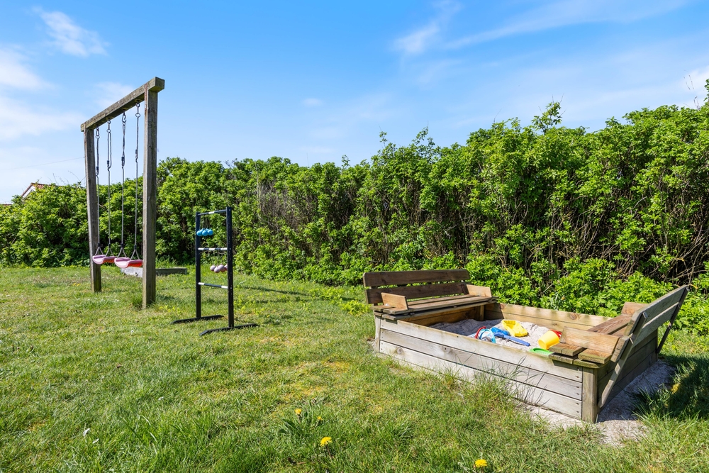 Im Süden gibt es aber auch die Möglichkeit, Windgeschützt zu sitzen. Das Rasengrundstück ist 1.204 m2 groß und verfügt zur Freude der jüngeren Gäste über eine Schaukel und einen Sandkasten.