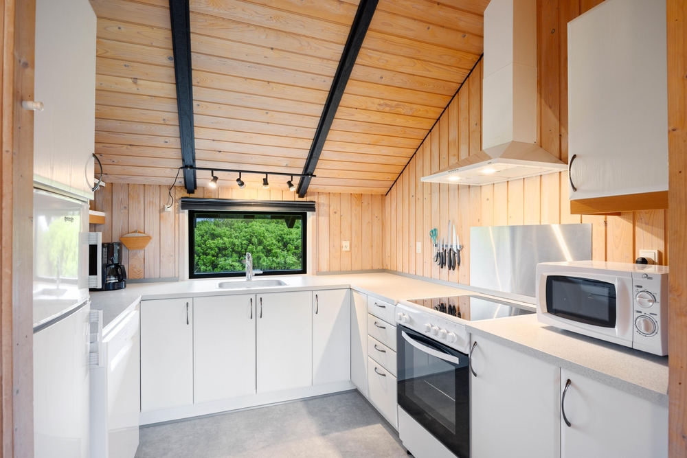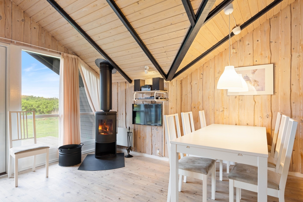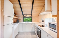 Dieses Ferienhaus verfügt über eine praktische Aufteilung. Den Mittelpunkt bildet der großzügige Wohnraum mit offener Küche. Hier könnt ihr es euch vorm Kamin bequem machen und die Aussicht durch die große Fensterfront genießen. Die gut ausgestattete Küche lädt zum Zubereiten leckerer Gerichte ein. Auch ein Geschirrspüler darf hier natürlich nicht fehlen. Weitere praktische Haushaltshelfer stehen euch in Form von Waschmaschine und Trockner zur Verfügung.