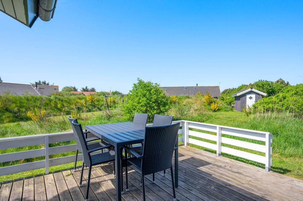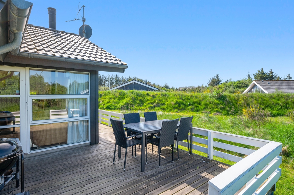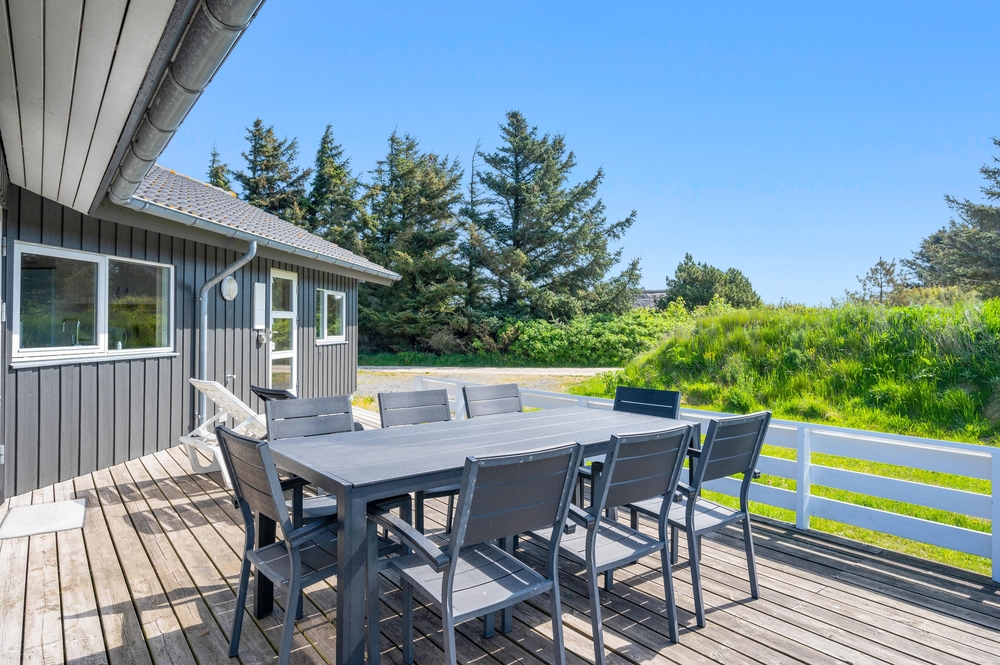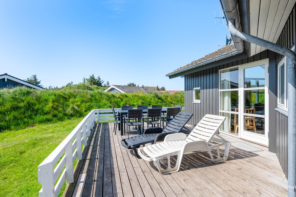 Oder magst du doch lieber auf der Terrasse am Ferienhaus sitzen und ganz entspannt deinen frisch gekochten Kaffee genießen? Auf der offenen Terrasse sitzt ihr immer schön in der Sonne und könnt euch beispielsweise noch die Sonnenliegen heranziehen, um die Beine hochzulegen. Abends den Grill anzuzünden und der Sonne beim Untergehen zuzuschauen ist ein echtes Highlight des Urlaubs.