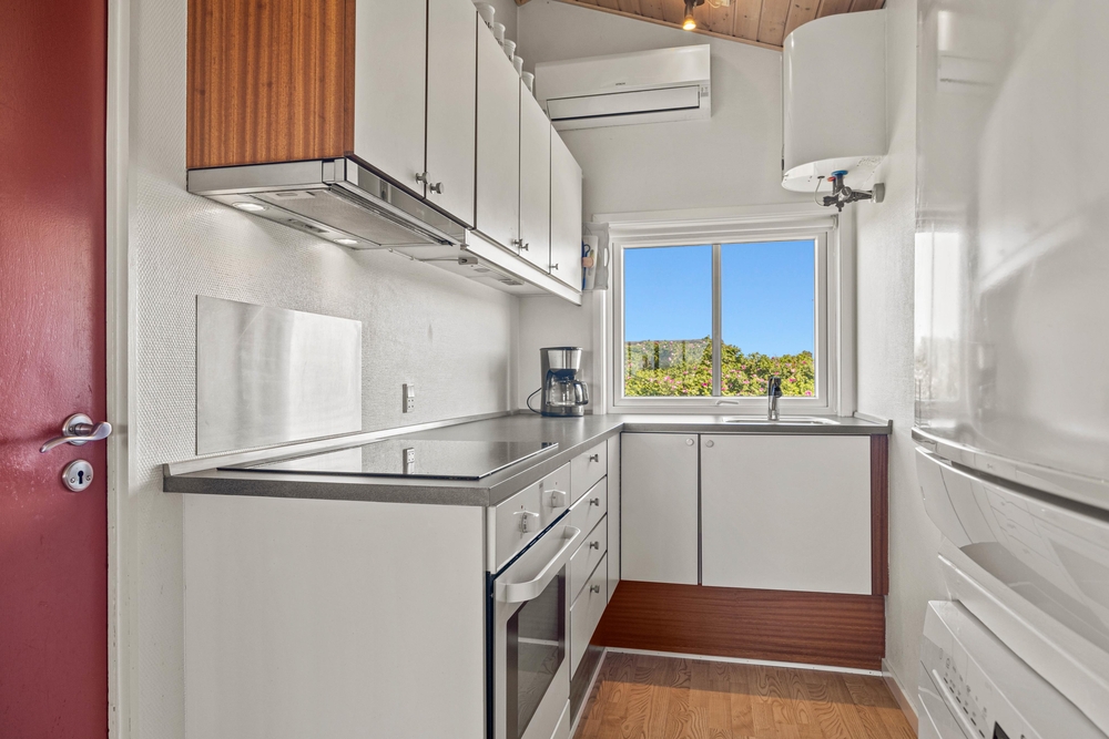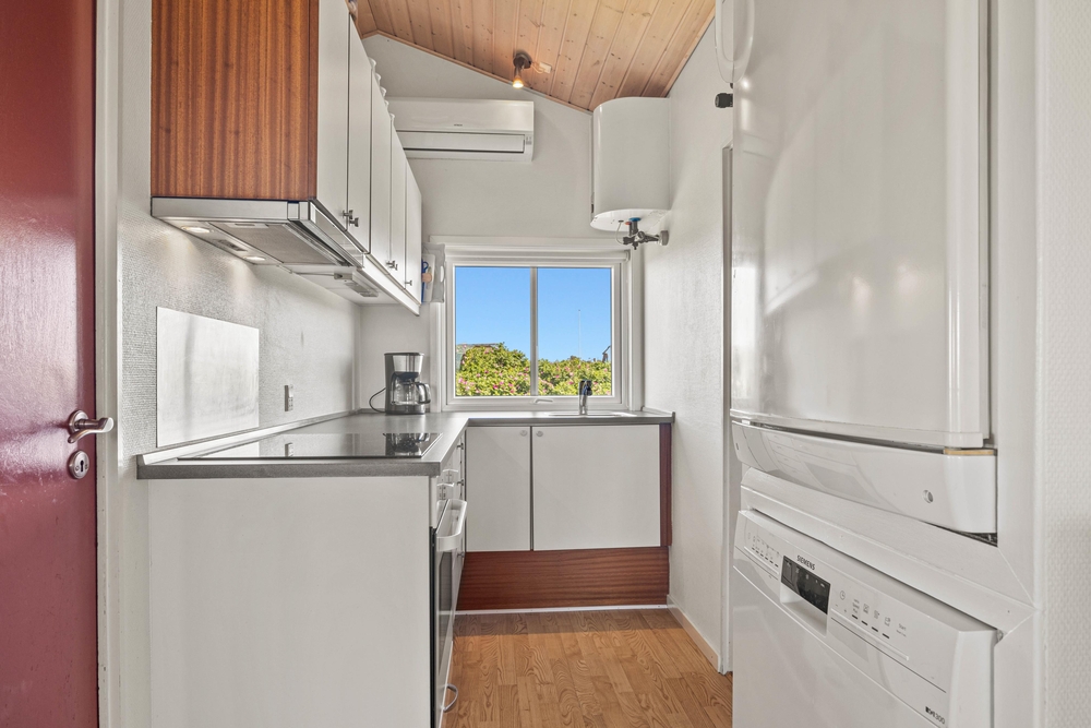 Viele Alltagshelfer sind hier vorhanden; sowohl Geschirrspüler, Waschmaschine, Trockner als auch eine Wärmepumpe. Die Waschmaschine und der Trockner sorgen dafür, dass immer saubere Kleidung vorhanden ist, während die Wärmepumpe für ein angenehmes Raumklima sorgt.