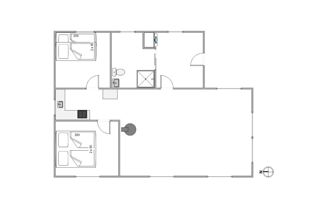 Das 50 m² große Ferienhaus verfügt über 2 Schlafzimmer und ist daher ideal für die kleine Familie oder ein befreundetes Paar geeignet. Der Wohnbereich ist mit komfortablen Möbeln ausgestattet und einem gemütlichen Kamin, der mit seiner zentralen Lage für Wärme und Gemütlichkeit sorgt. Hier ist Platz für ?Couch-Stunden? ? sei es beim Anschauen eines Films, beim Lesen eines guten Buches oder einfach nur beim Betrachten der einzigartigen Natur direkt vor den Fenster.