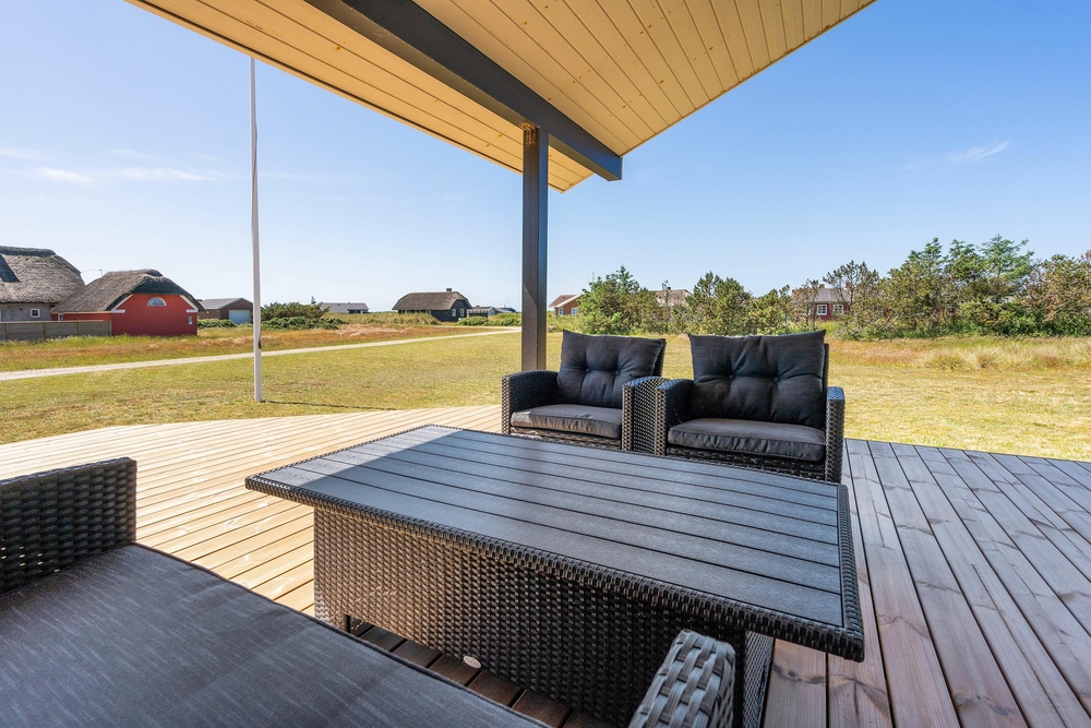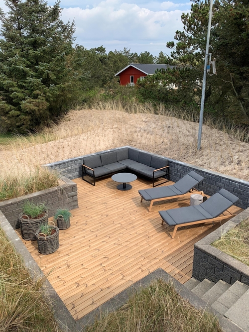 Rund um das Haus, welches auf einem offenen Grundstück ganz nah zum Strand, auf Lille Strandvej 3, liegt, findet ihr mehrere verschiedene Terrassen und Sitzmöglichkeiten. Ihr könnt es euch direkt auf der an das Wohnzimmer anschließenden Terrasse bequem machen, draußen essen oder entspannt das Treiben der Nachbarschaft beobachten.