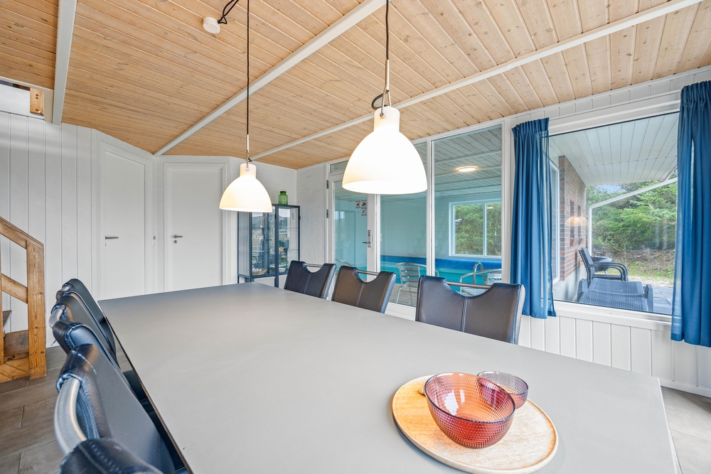 Im Lille Strandvej 5 findet ihr dieses familienfreundliche Ferienhaus, auf das sich Jung und Alt gleichermaßen freuen werden. Die 144 m2 Wohnfläche verteilen sich auf zwei Etagen. Im Erdgeschoss findet ihr die offene Küche, an der das Esszimmer angrenzend ist. Am großen Esstisch können bequem die Mahlzeiten eingenommen werden. Aber auch eignet sich der Tisch hervorragend für gemütliche Spieleabende. Von hier aus könnt ihr direkt nach draußen gelangen. Das Poolhaus wurde auf einem 1203 Quadratmeter großen Naturgrund gebaut.