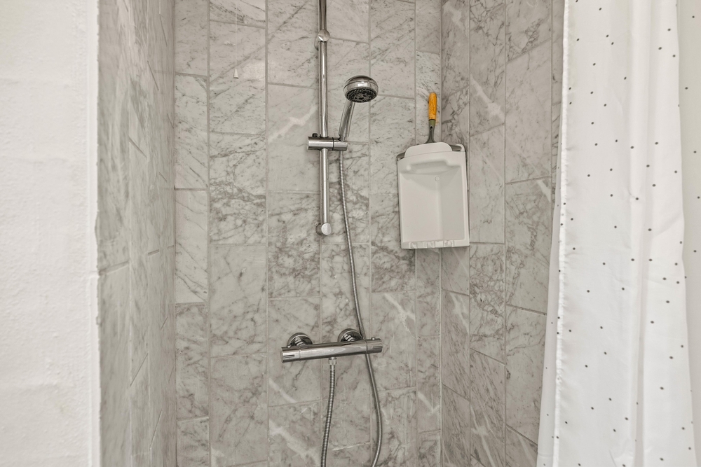 Zusätzlich zum Wohnzimmer und der Sauna befinden sich noch ein Schlafzimmer im ersten Stock. Die drei anderen Schlafzimmer befinden sich alle im Erdgeschoss. Von den vier Schlafzimmern sind drei mit einem Doppelbett und das vierte mit zwei Einzelbetten ausgestattet.
