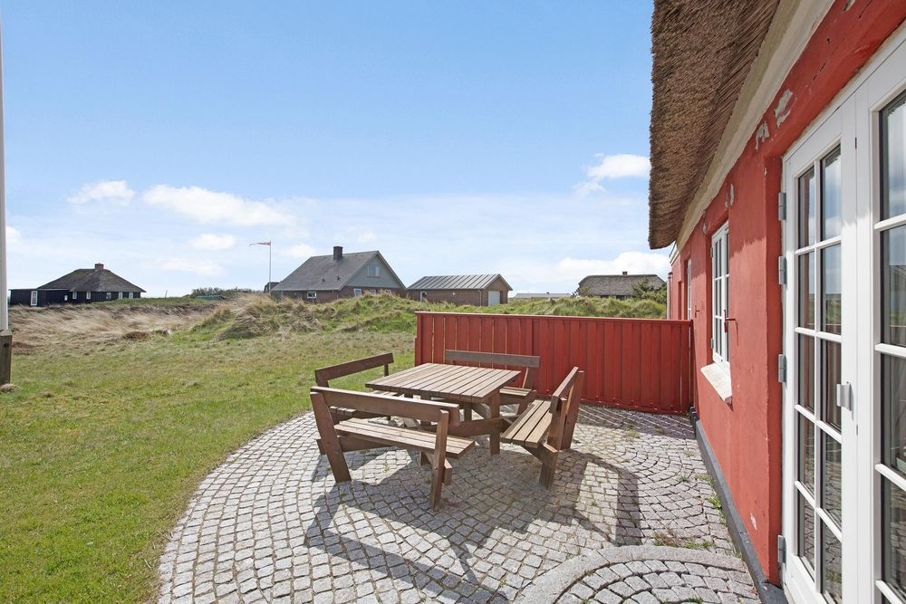 Im Lille Strandvej 7 im populären Feriengebiet in Blåvand steht dieses charakteristische Reetdachhaus auf einem schönen Dünengrundstück. Es bietet Platz für bis zu 8 Personen, ist also ideal für einen Familienurlaub, aber auch für befreundete Paare, die ihre Ferien gemeinsam und in perfekter Lage verbringen möchten.