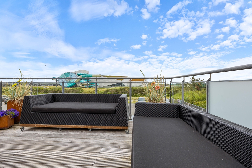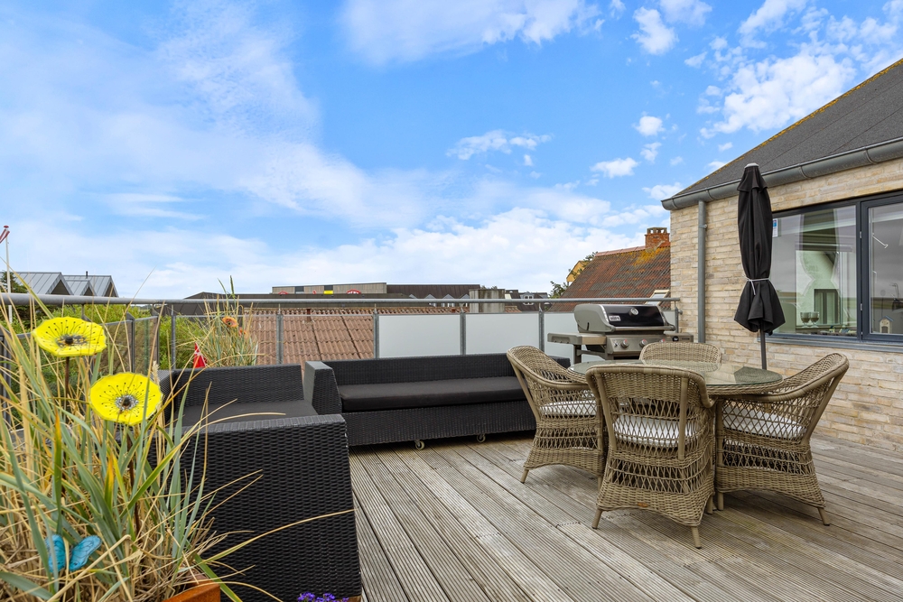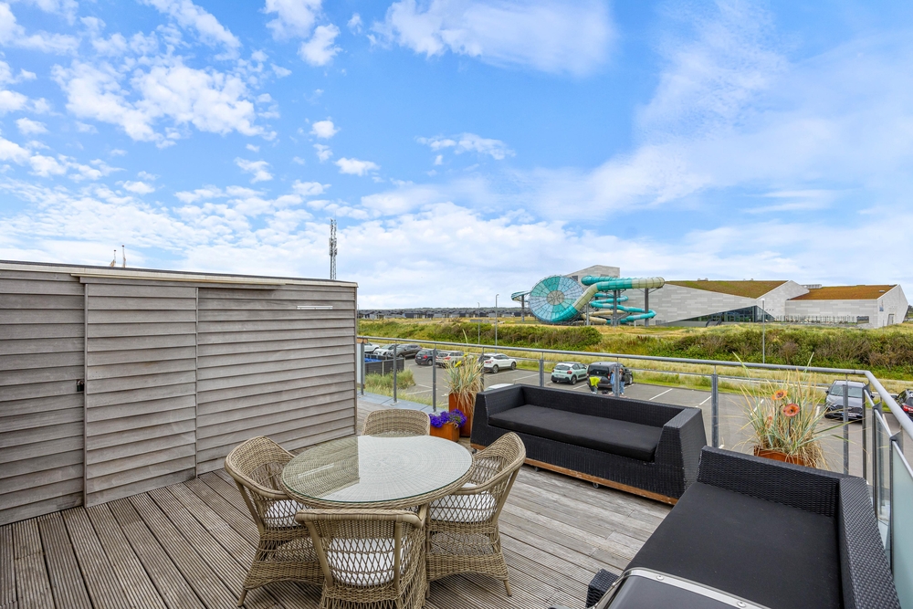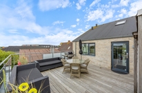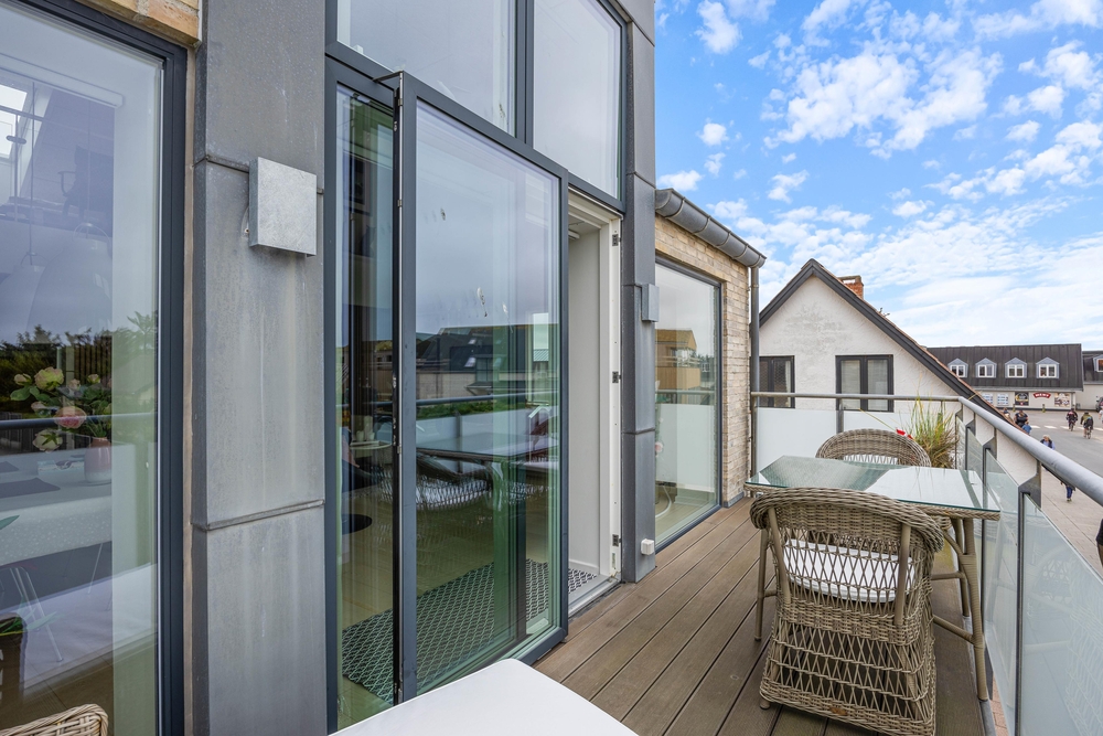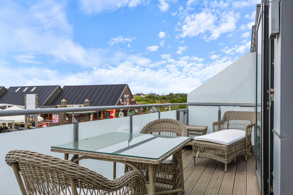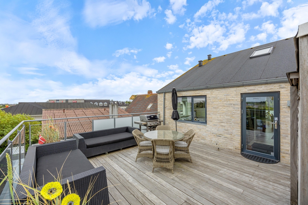 Vom Wohnraum der Ferienwohnung aus kommt ihr auf die offene und abgeschirmte Terrasse, von der aus ihr über das Treiben Søndervigs schauen könnt. Die Terrasse ist mit passenden Terrassenmöbeln ausgestattet, sodass ihr es euch hier gemütlich machen und die Sonne genießen könnt. Abends könnt ihr dann einen gelungenen Urlaubstag mit einem gemütlichen Grillabend vom Gasgrill ausklingen lassen.