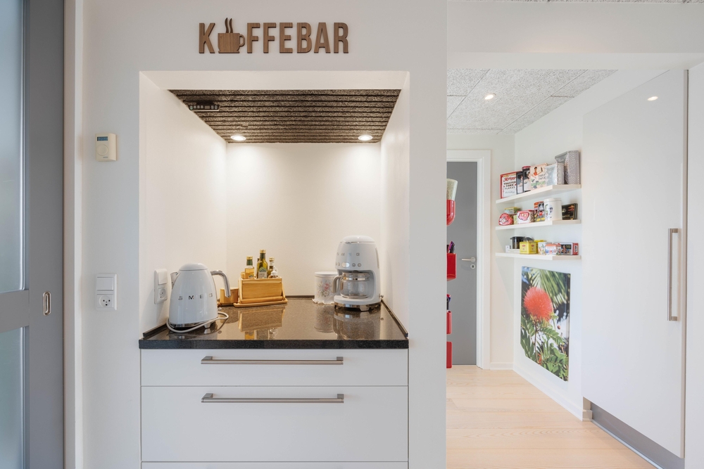 Wenn ihr die Ferienwohnung betretet, werdet ihr direkt von einer modernen Einrichtung begrüßt, durch die ihr euch von Anfang an wie zu Hause fühlen werdet. Das Herzstück der Ferienwohnung ist der große Wohnraum, der das Wohnzimmer und den Essbereich miteinander verbindet. Die Küche ist zum Wohnraum hin offen und agiert als Verlängerung vom Wohnbereich. Hier könnt ihr gemeinsam kochen oder die nächsten Aktivitäten des Urlaubs planen. Abends könnt ihr euch dann euren Lieblingsfilm auf dem Flachbildschirmfernseher der Ferienwohnung ansehen.