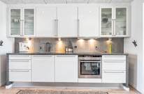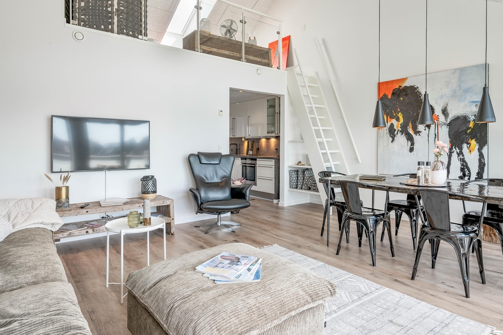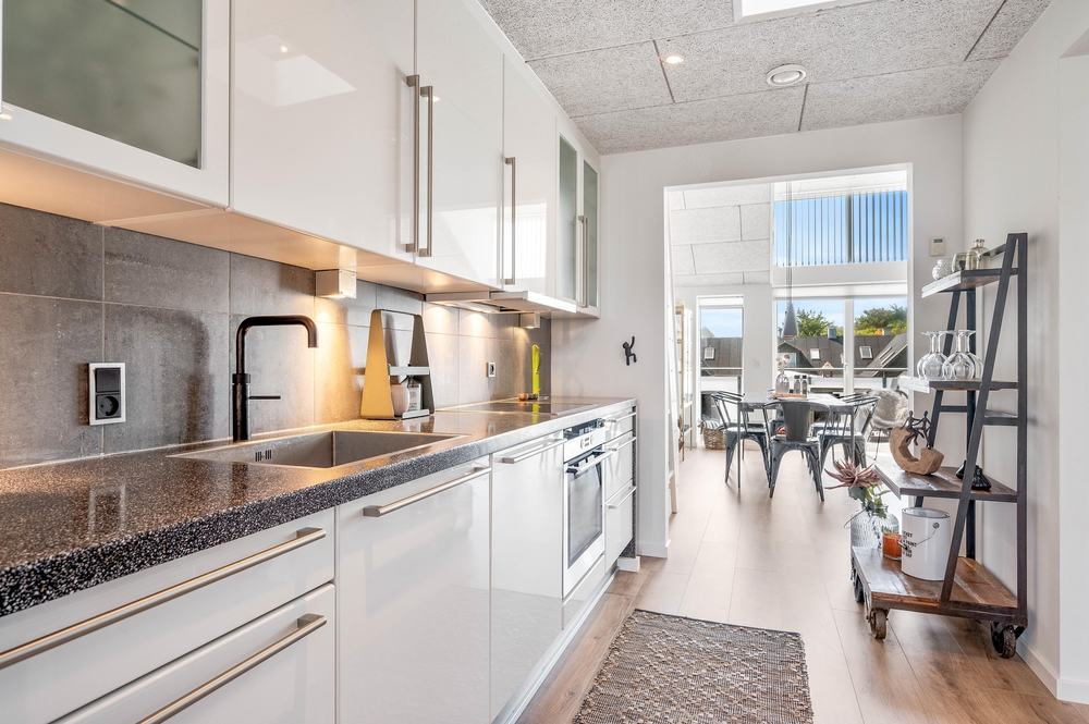Im Lodbergsvej 10, Wohnung 4, fällt als Erstes die schöne, offene Küche ins Auge. Sie ist sehr gut ausgestattet und lässt keine Wünsche offen. Das Zubereiten Eurer Köstlichkeiten wird hier zum Genuss und für die kalten Erfrischungen sorgt der große amerikanische Side by Side Kühlschrank mit Eiswürfelfach.