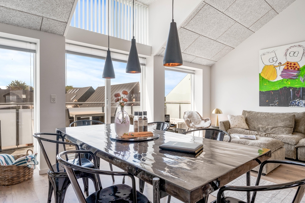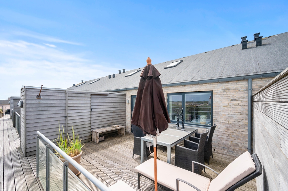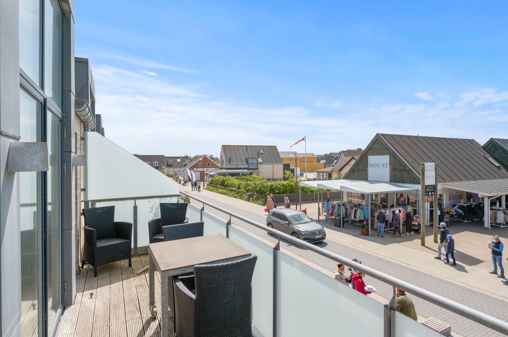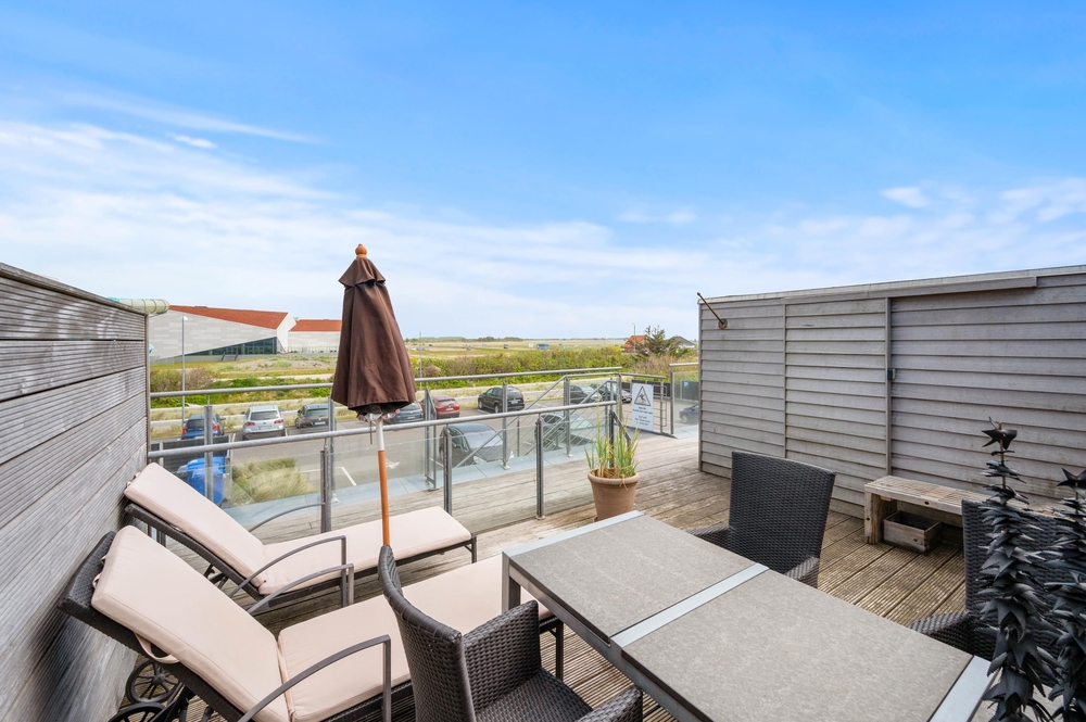 Der wunderbare Balkon lädt jederzeit zum Verweilen ein. Gut geschützt und mit viel Platz, lässt er jeden Grillabend oder lange Abende zum unvergesslichen Erlebnis werden. Bestaunt den Sonnenuntergang über den Dünen oder erfreut euch am regen Treiben im Zentrum von Søndervig. Durch die wirklich einzigartige Lage dieser Ferienwohnung ist dies alles kein Problem. Der vorhandene Kohlegrill macht das Zubereiten eures Grillguts zum Vergnügen und die modernen Balkonmöbel sichern gemütliche, entspannte Abende durch fantastischen Sitzkomfort. Auch dieser Balkon lässt also keine Wünsche offen.