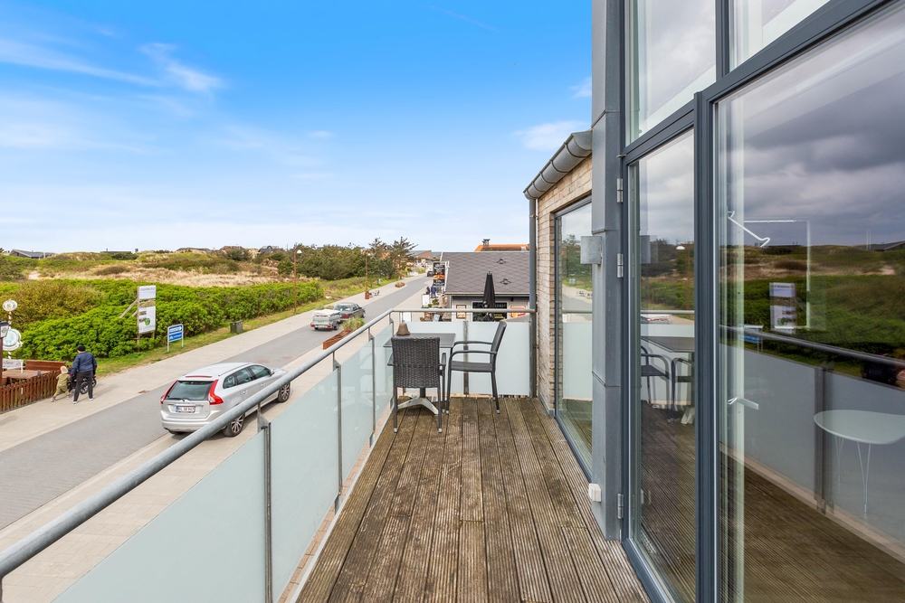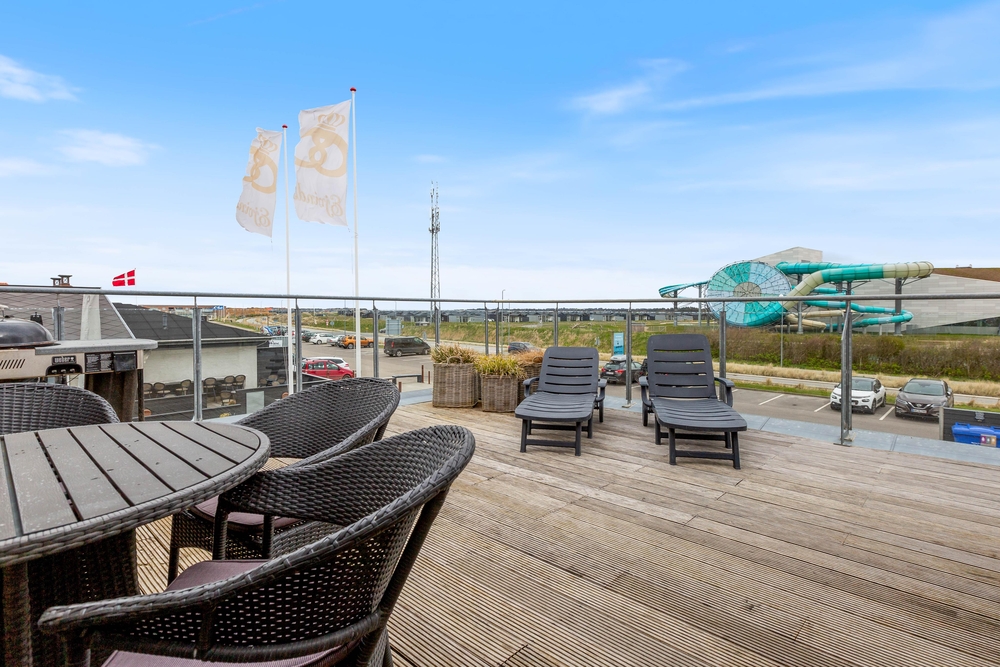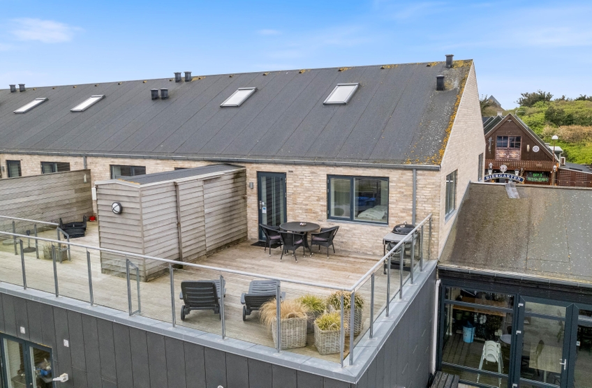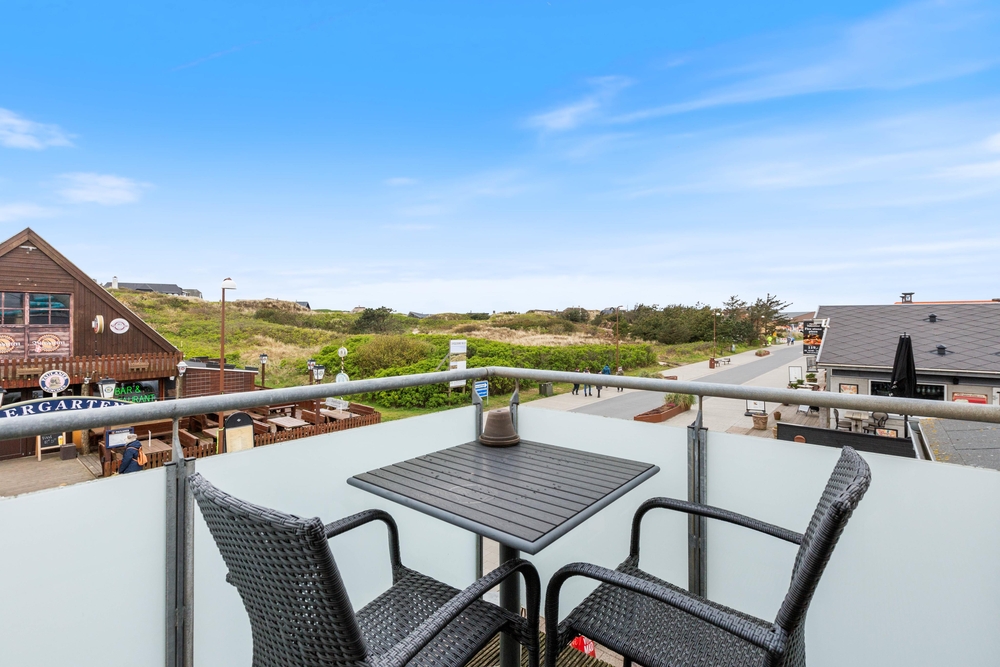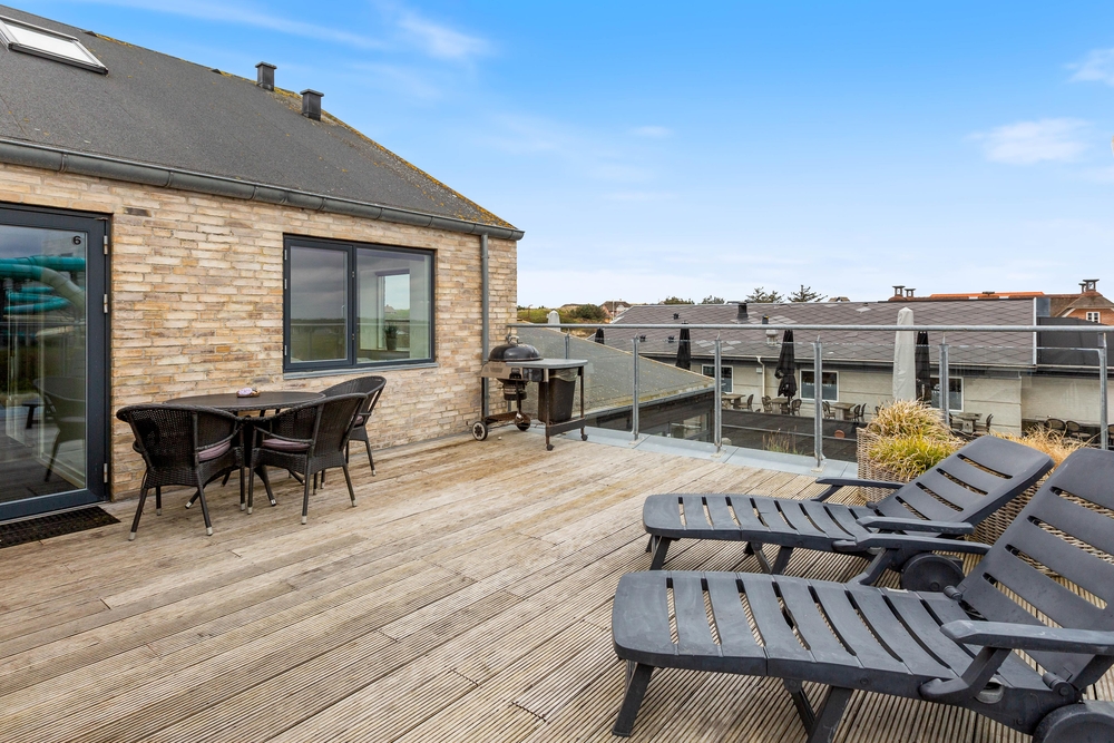 Sehr schöne Ferienwohnung mit luxuriöser Einrichtung im Herzen von Søndervig. Zu der Ferienwohnung gehört eine ca. 30 m² große Dachterrasse, von der ihr einen schönen Blick auf den Ringkøbing Fjord und das neu entstehende Badeland habt. Die Abendsonne könnt ihr auf dem nach Westen ausgerichteten Balkon genießen.
