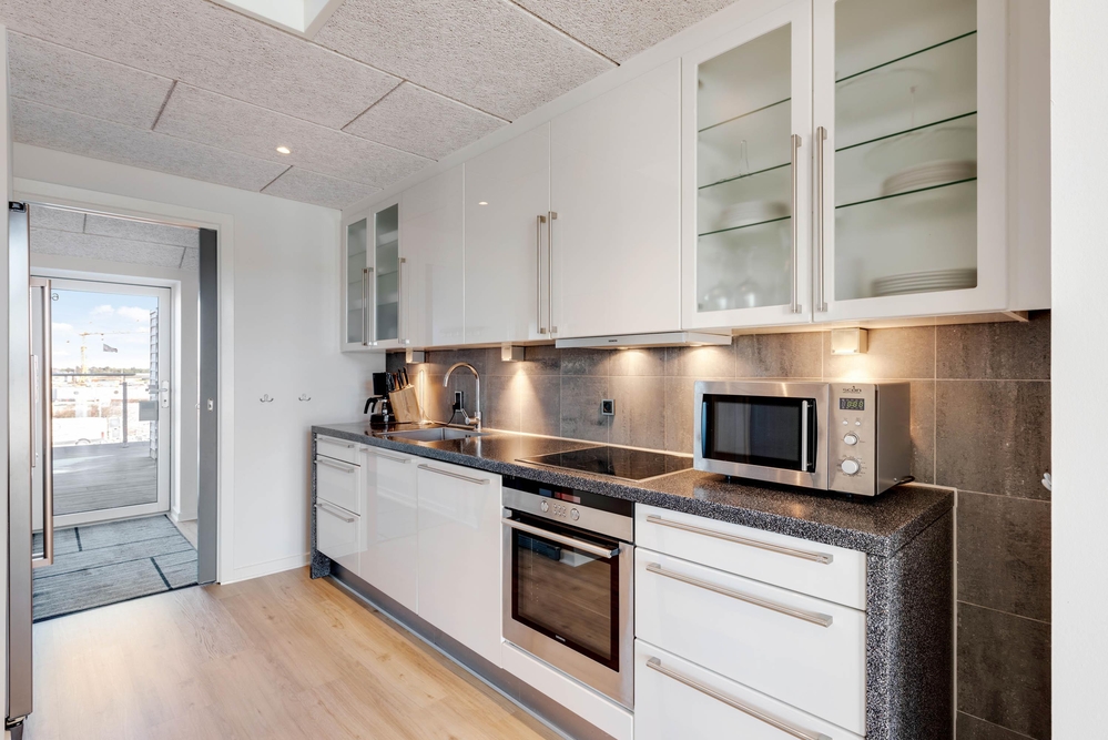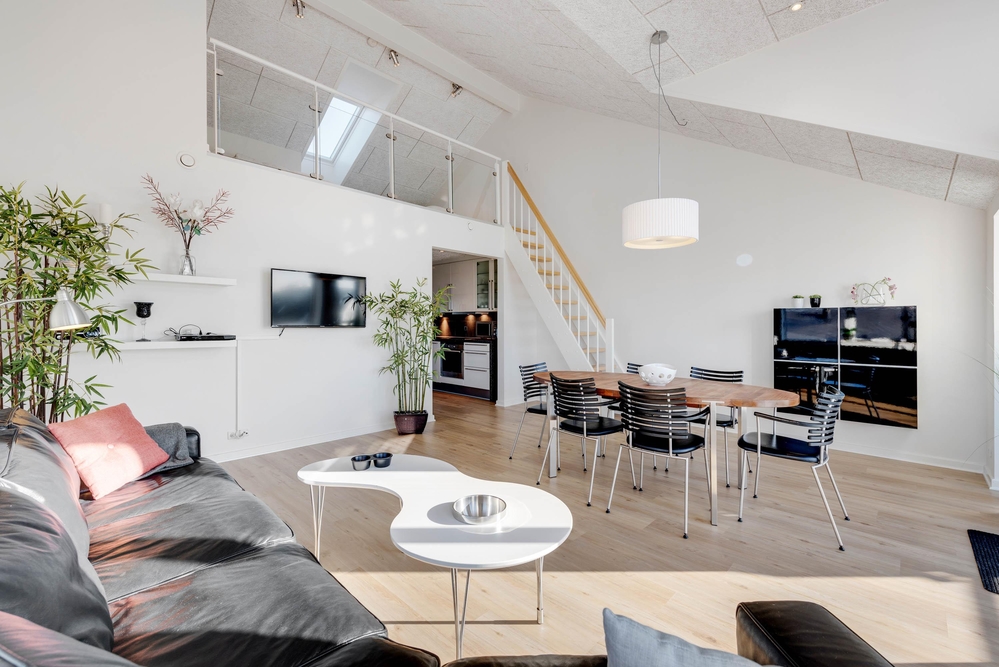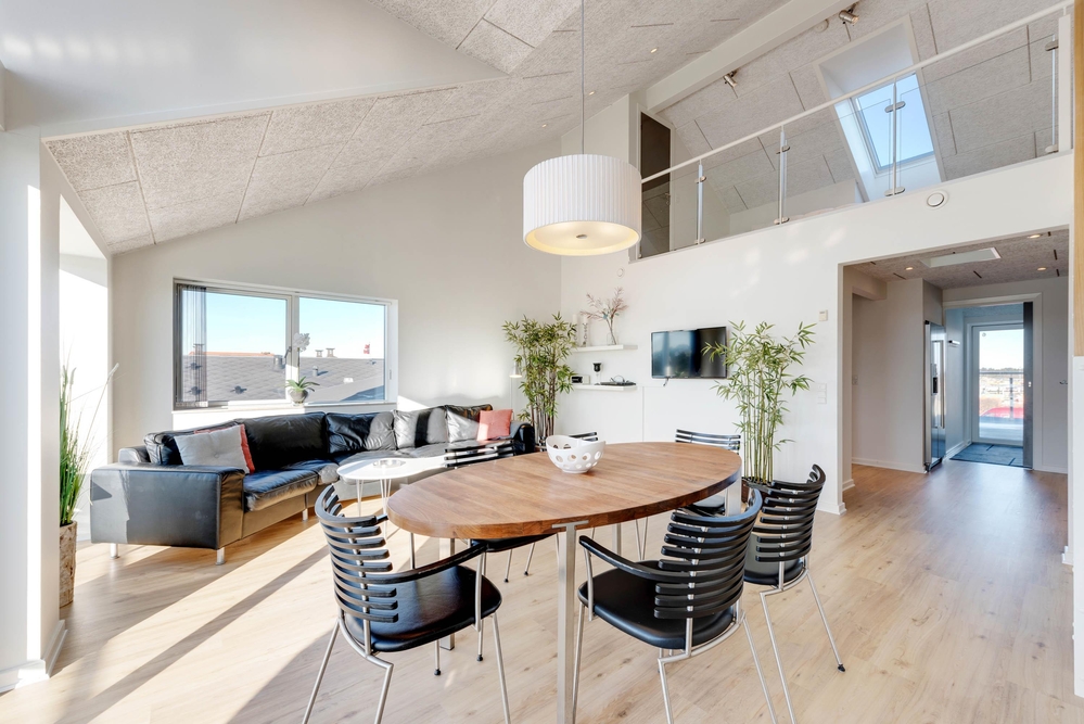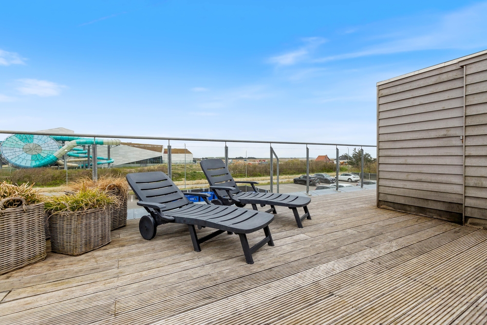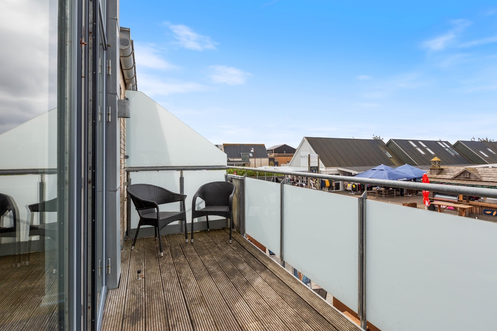 Sehr schöne Ferienwohnung mit luxuriöser Einrichtung im Herzen von Søndervig. Zu der Ferienwohnung gehört eine ca. 30 m² große Dachterrasse, von der ihr einen schönen Blick auf den Ringkøbing Fjord und das neu entstehende Badeland habt. Die Abendsonne könnt ihr auf dem nach Westen ausgerichteten Balkon genießen.