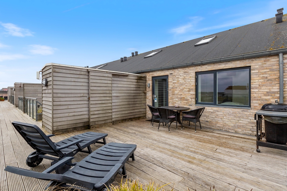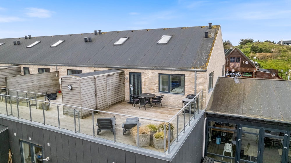 Genießt die Mahlzeiten auf den 2 großen und herrlichen Terrassen. Die große Dachterrasse ist zum Ringkøbing Fjord und Richtung Lodbjerg Hede ausgerichtet. Die andere Terrasse liegt in Richtung der Hauptstraße in Søndervig.