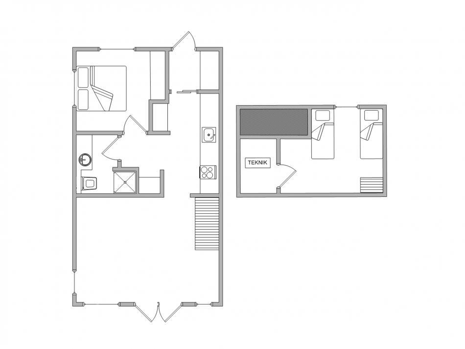 Im Schlafzimmer befindet sich ein sehr schönes Hochbett und vom Hängeboden oben habt Ihr einen großzügigen Blick auf die Wohnung.