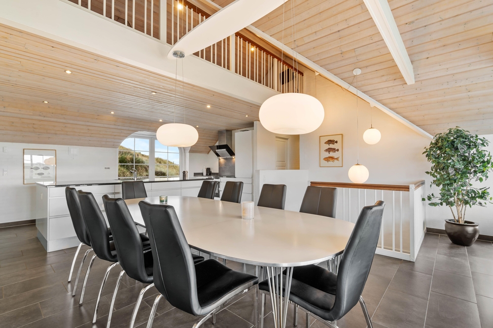 Die grosse Wohnküche und das Wohnzimmer wurden hier kombiniert und bilden einen großen Aufenthaltsraum, wo gemeinsam gekocht oder über die Erlebnisse der vergangenen Tage geredet werden kann. Durch die großen Fensterflächen könnt ihr auf die tolle Dünenlandschaft gucken ? egal, wo ihr im Raum seid. Die Küche ist praktisch und modern eingerichtet mit seperater Kochinsel, sodass alle beim Kochen mithelfen können.