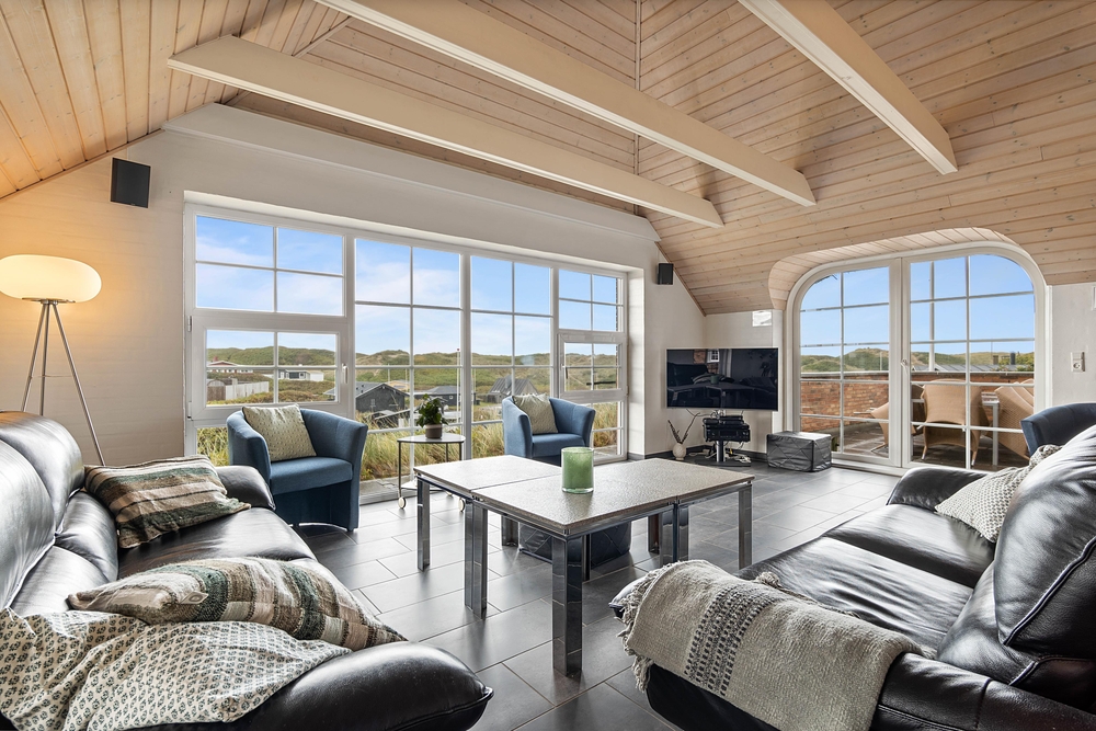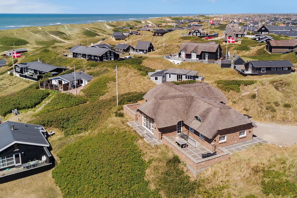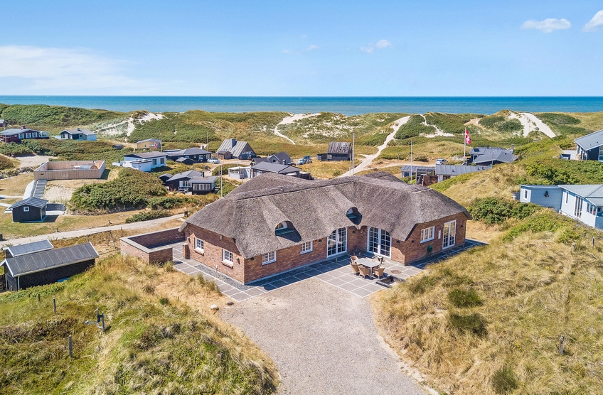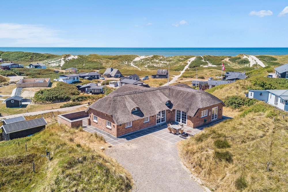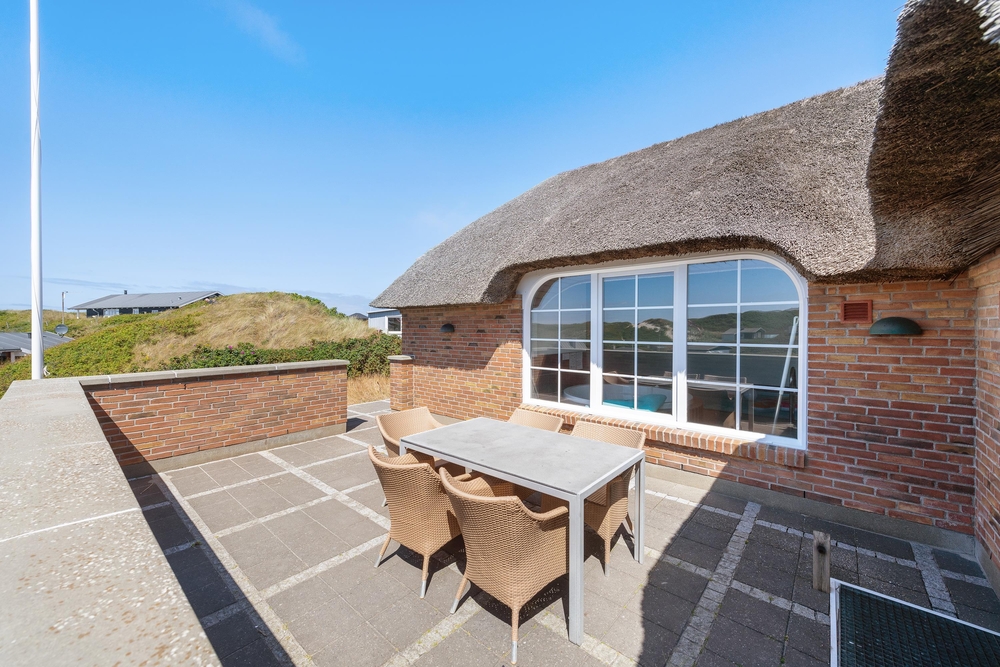 Um das Haus herum gibt es mehrere offene und geschützte Terrassen mit gemütlichen Sitzplätzen und Sonnenliegen. Ihr habt immer die Möglichkeit, die Sonnenstrahlen und auch den Sonnenuntergang zu genießen. Solltet ihr auf der Terrasse sitzen und die umliegenden Dünen im Wind beobachten, könnt ihr dem Meeresrauschen lauschen.