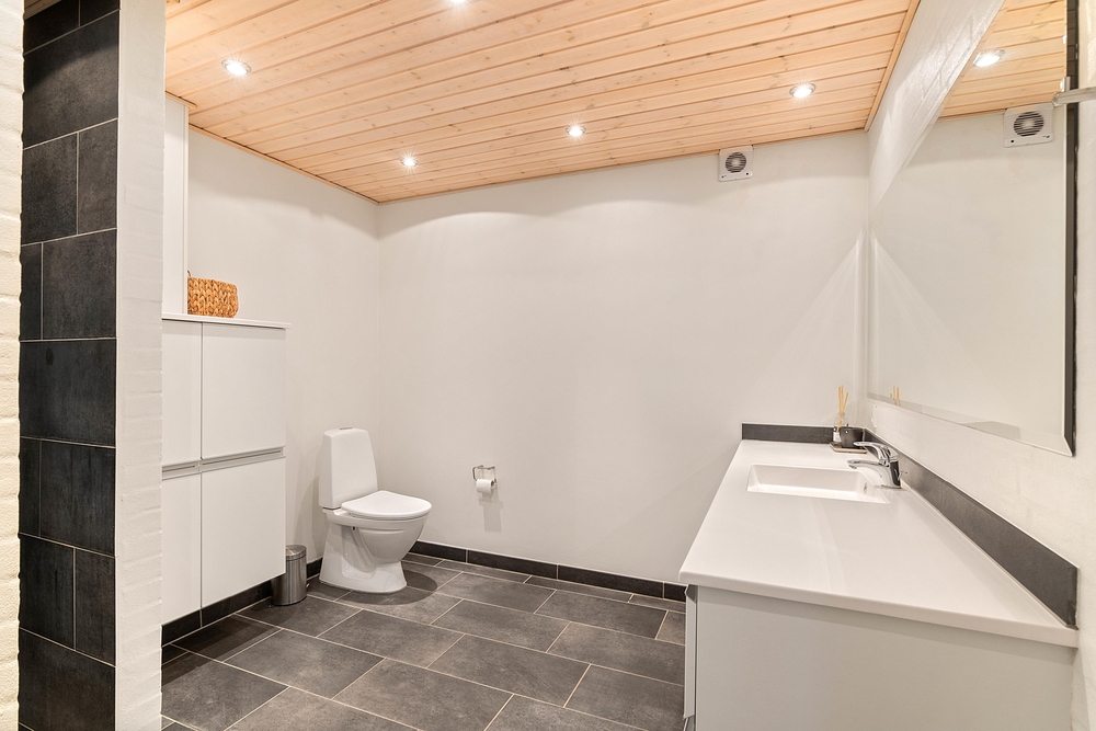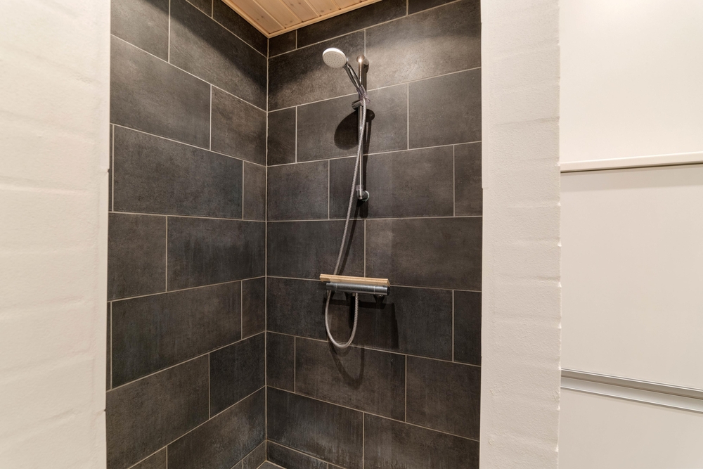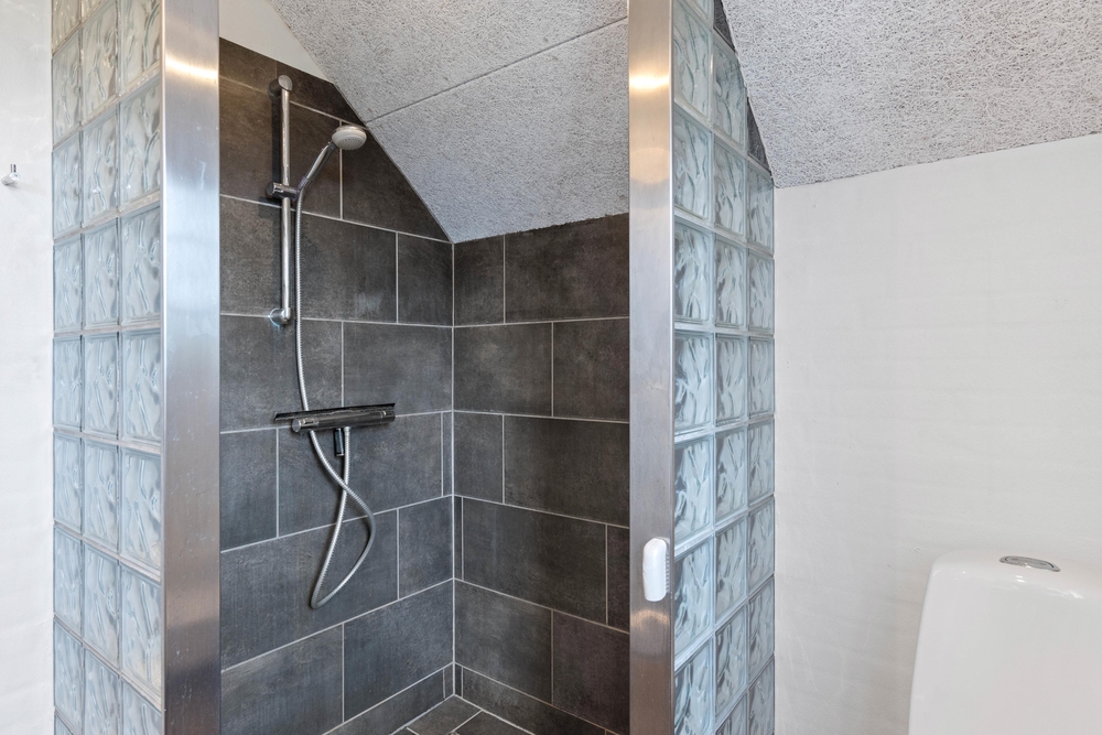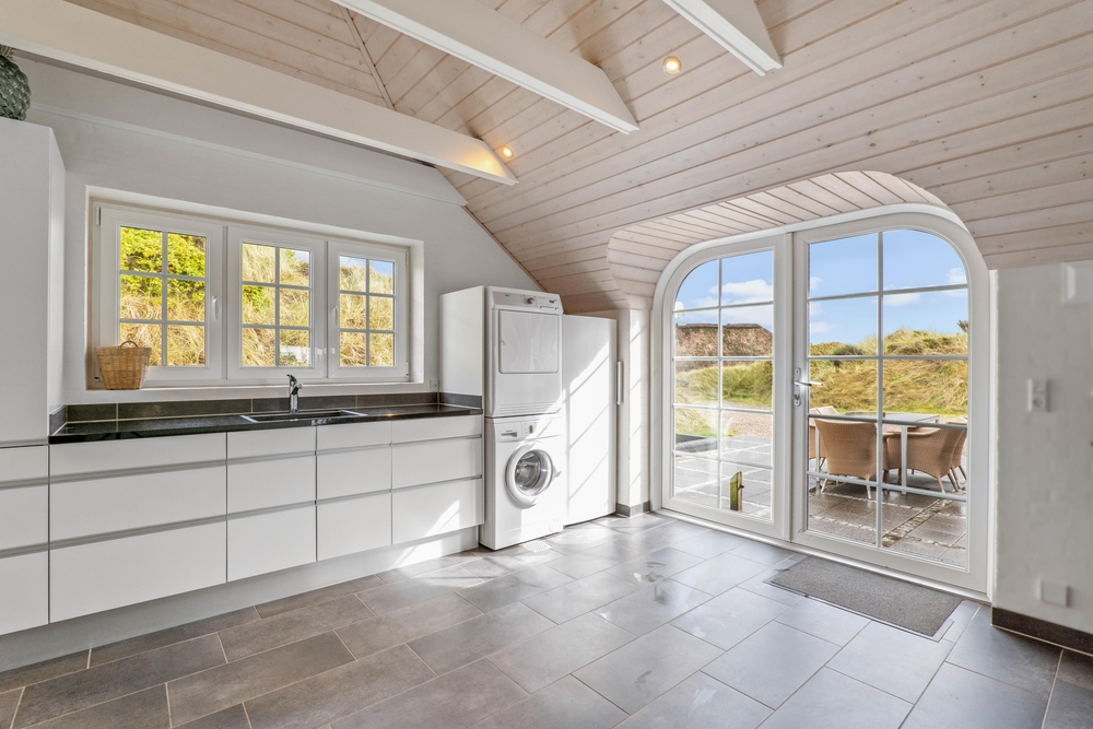 Das Ferienhaus verfügt auch über einen praktischen Abstellraum, wo Waschmaschine, Trockner und 100-Liter-Gefrierschrank untergebracht wurden.