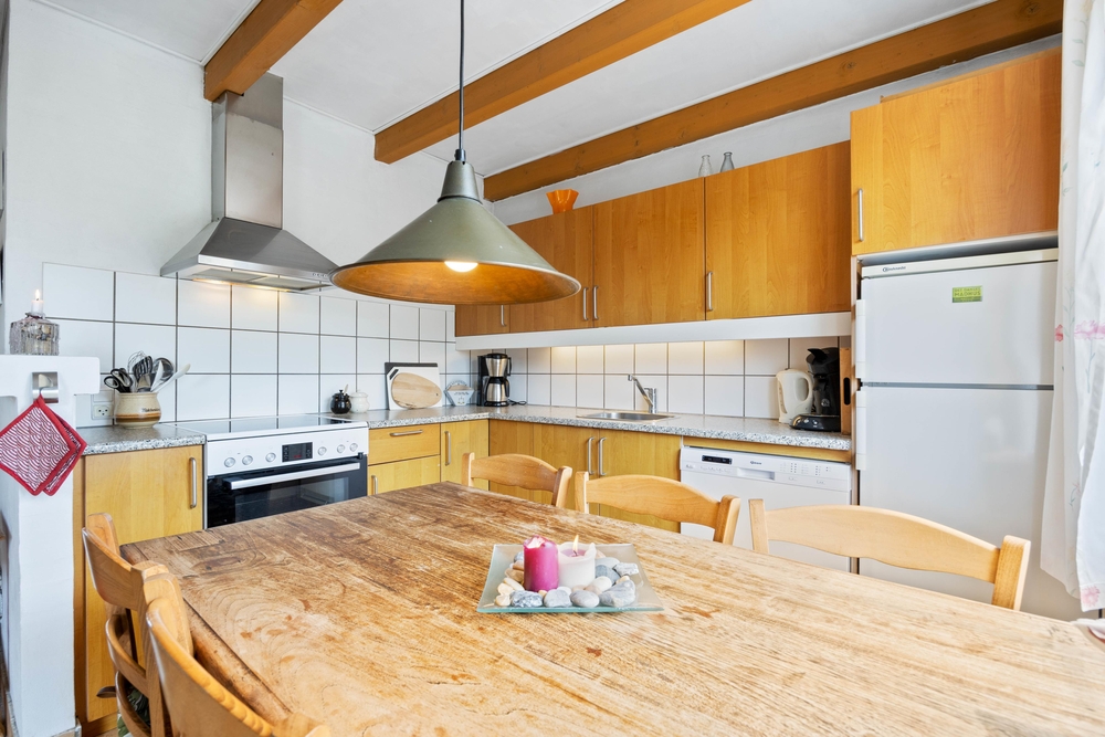 Die 94 m2 verteilen sich auf 2 Etagen mit einer offenen Küche, angrenzendem Wohn ? und Essbereich, 2 Badezimmern und 3 Schlafzimmern. Nach einem ereignisreichen Urlaubstag könnt ihr euch beim gemeinsamen Kochen in der gut ausgestatteten Küche auf einen gemeinsamen Abend freuen. Damit ihr eure wertvolle Zeit nicht mit dem Abwasch verschwenden müsst, gibt es einen Geschirrspüler.