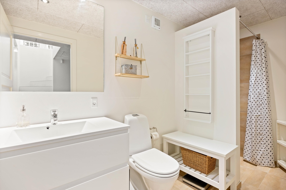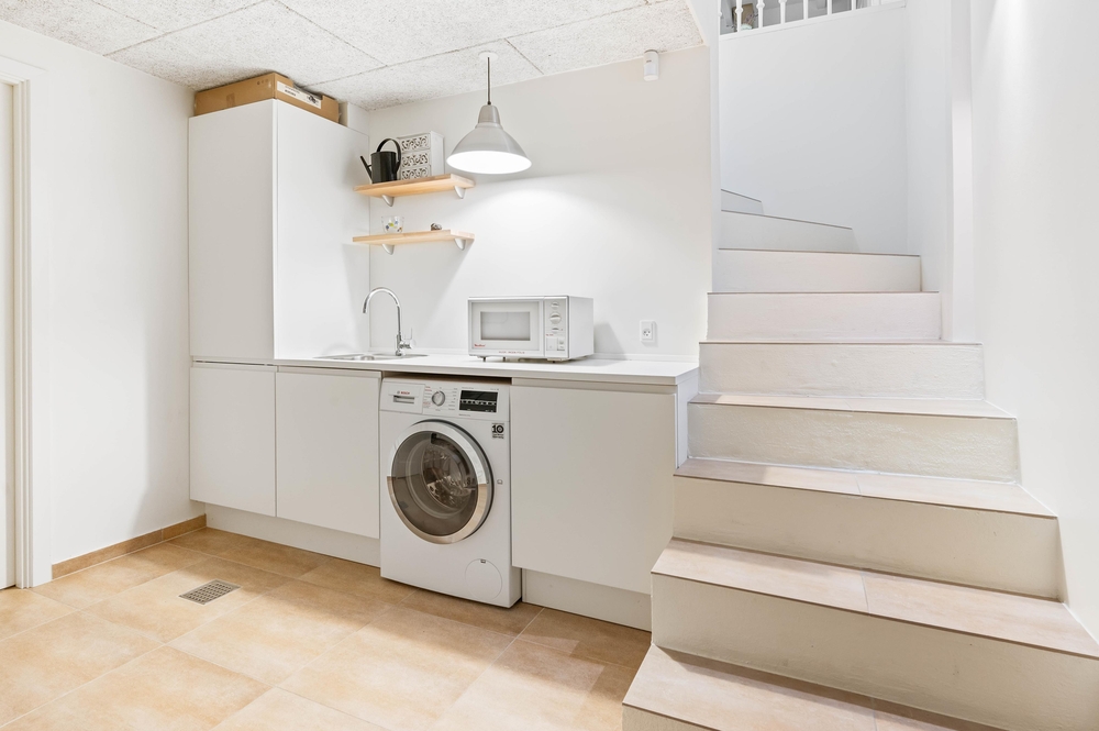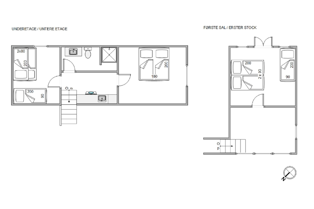 Die 149 m2 verteilen sich auf 3 Etagen. Im Erdgeschoss befindet sich der offenen Wohn- und Essbereich, die ebenfalls offene Küche und eine Toilette. Im Obergeschoss erwarten euch 2 Schlafzimmer und im Souterrain befindet sich ein Hauswirtschaftsraum, ein modernes Badezimmer und ein Schlafzimmer. Die vielen Fenster im Ferienhaus sorgen für eine freundliche, helle Atmosphäre und die offene Gestaltung des Wohnraums vermittelt ein angenehmes Wohngefühl. Im Obergeschoss befindet sich ein Fernseher der nur für die mitgebrachte Spielekonsole angedacht ist.