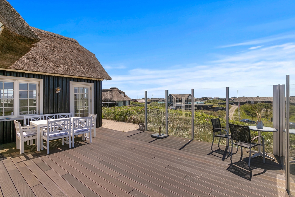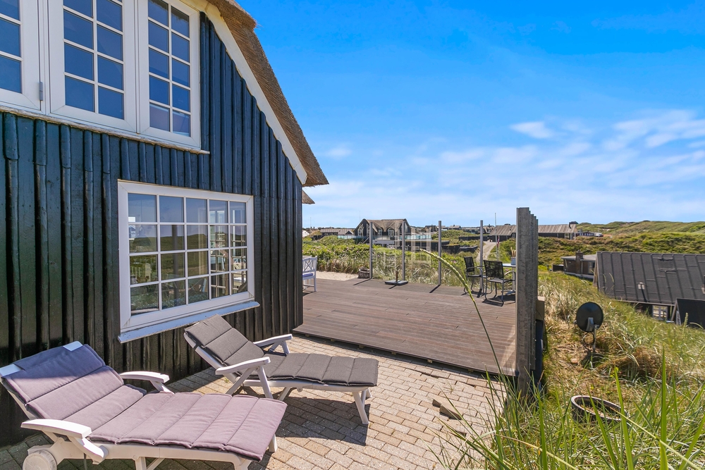 Ihr werdet den umwerfenden Blick von diesem 884 m2 großen Dünengrundstück aus lieben. Auf einer Düne gelegen mit vielen gemütlichen Sitzmöglichkeiten, habt ihr die Möglichkeit das Meer zu sehen und über die Dünen von Søndervig zu schauen. Erlebt fantastische Abende in der hyggeligen Außenhütte mit Meerblick. Durch die vielen Möglichkeiten ist es, auch wenn das Wetter mal nicht ganz so mitspielt, möglich, den Außenbereich zu nutzen.