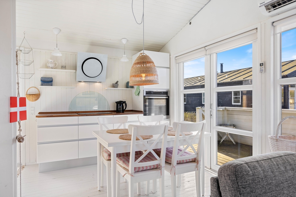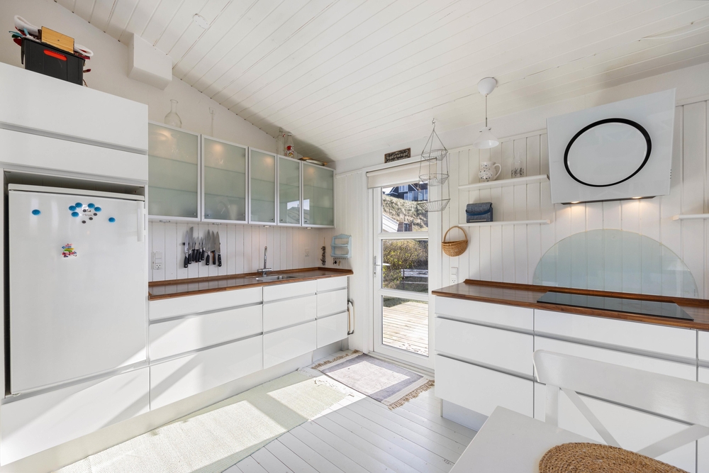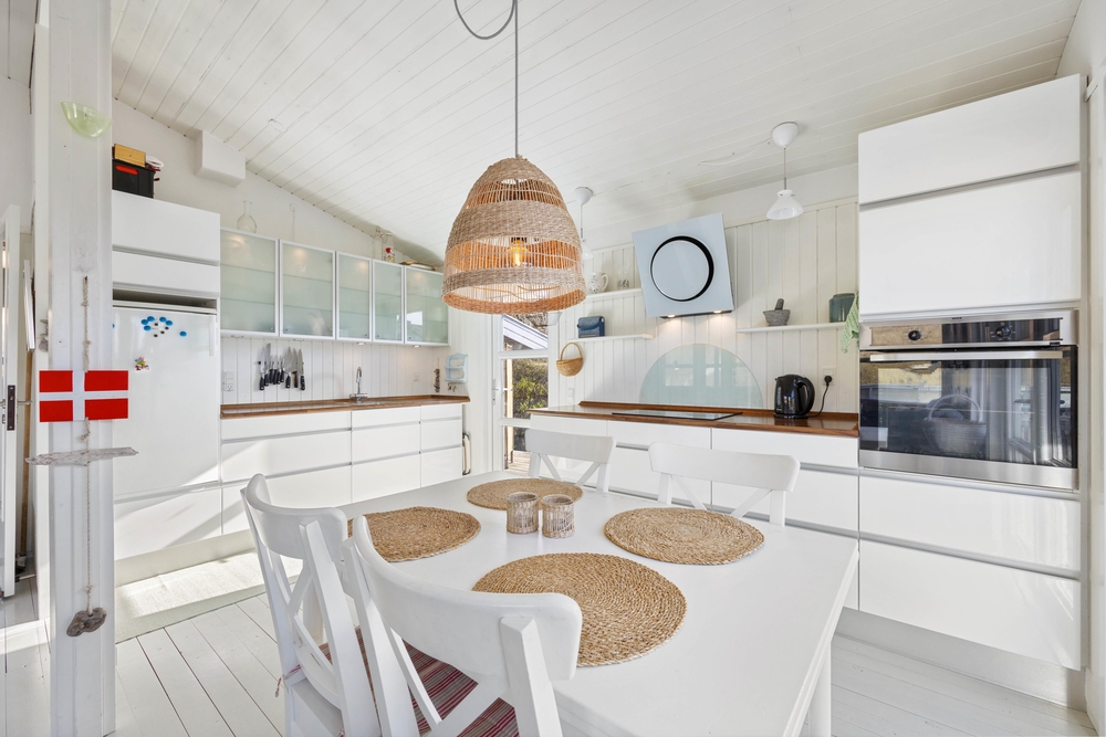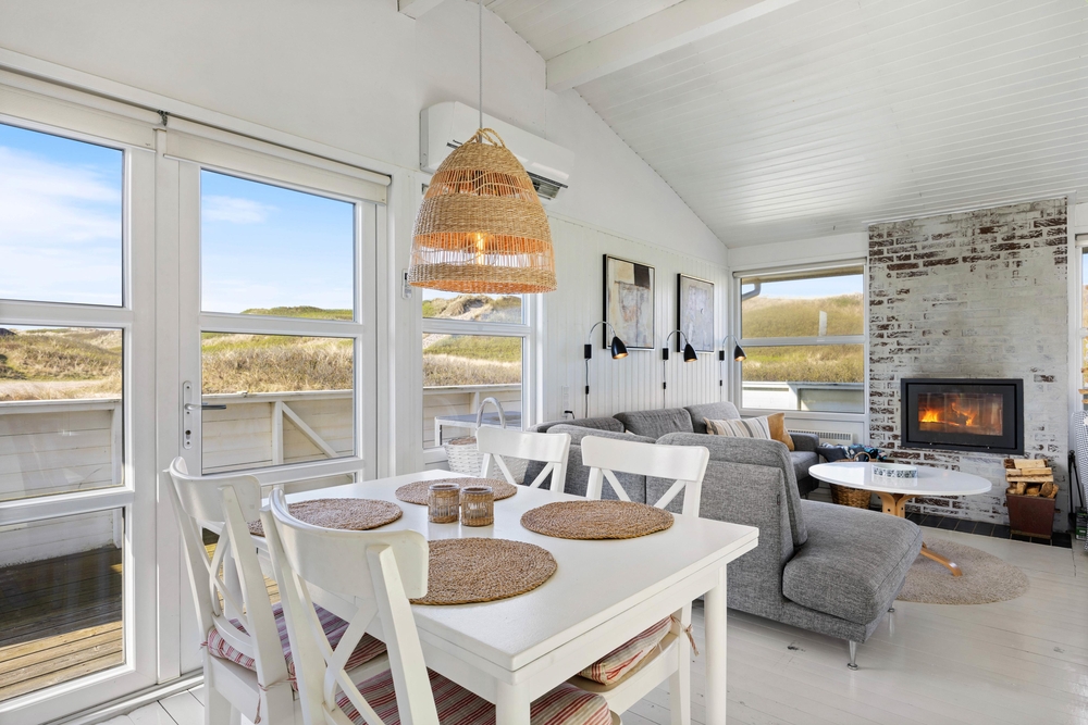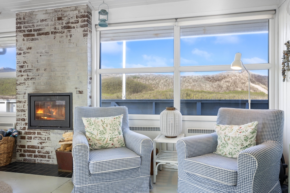 Sobald ihr die Eingangshalle betretet, erlebt ihr ein gemütliches, helles und einladendes Ferienhaus. Vom Wohnzimmer aus könnt ihr die atemberaubende Dünenlandschaft genießen, während an kalten Tagen der Holzofen im Hintergrund knistert. Der Wohnraum verbindet, Küche, Wohnzimmer und Essbereich miteinander, sodass ihr euch gemeinsam unterhalten könnt, egal ob ihr in der Küche ein leckeres Essen zubereiten oder auf dem Sofa sitzen und einen Film schaut.