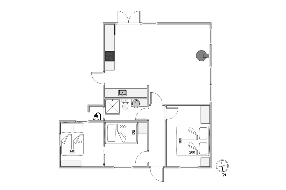 Nach nur 50 Metern erreicht ihr den atemberaubenden Sandstrand von Søndervig, der sich über mehrere Kilometer erstreckt. Der Strand lädt zu ausgedehnten Spaziergängen ein oder an heißen Sommertagen zu einem kühlen Bad im Wasser. Nachdem ihr euch im Wasser abgekühlt habt, könnt ihr euch in der Außendusche des Ferienhauses den Sand wieder abspülen.