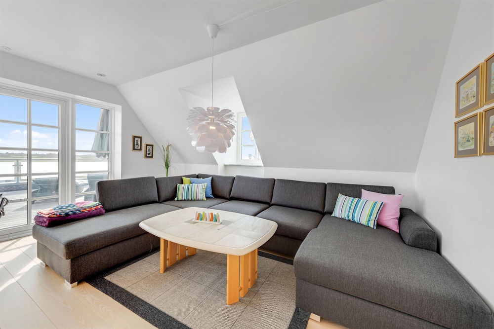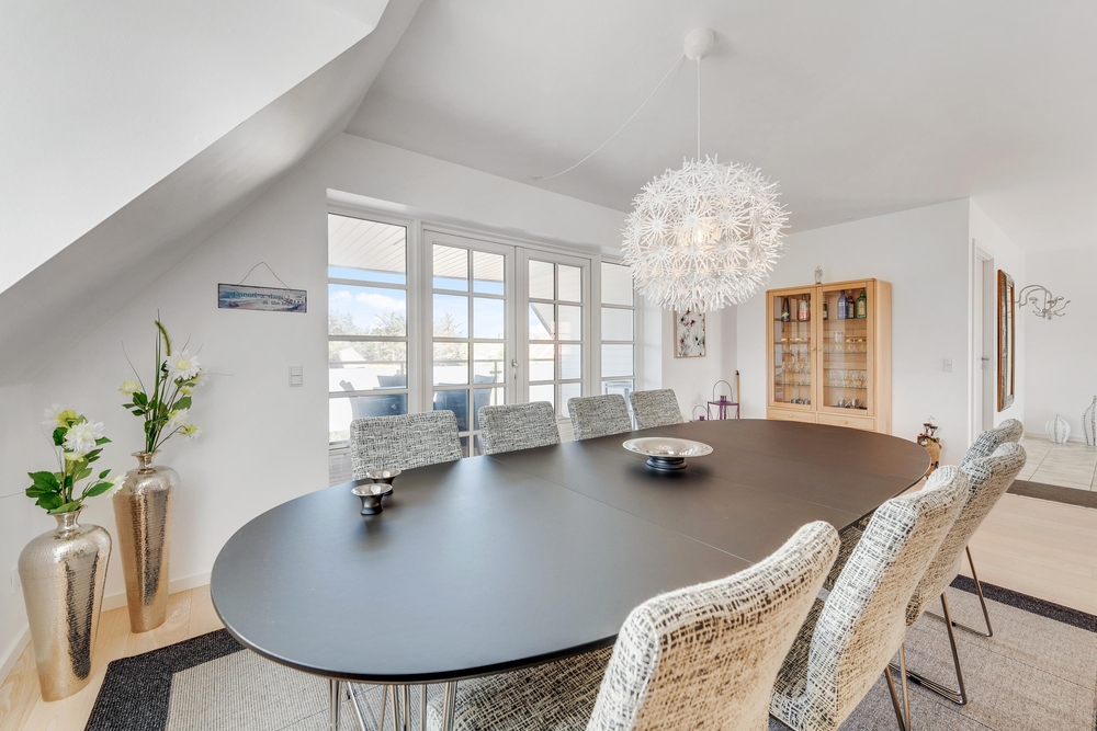 Die 115 Quadratmeter große Ferienwohnung wurde hell und modern eingerichtet und schafft den idealen Rahmen um den Urlaub der Familie oder des Paares, die ein bisschen mehr Komfort haben möchte. Der Whirlpool steht dafür bereit, euch zu verwöhnen, und durch die vielen Fenster kommt ein schönes Licht in die Wohnung. Die Küche ist groß und hat viel Platz dafür, dass der Urlaubskoch die Lieblingsgerichte der Familie kochen kann.