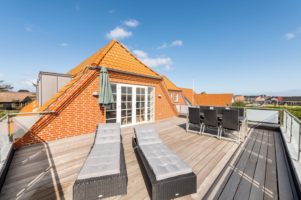 Mitten in der Ferienstadt Søndervig, nah an der Nordsee, spannenden Läden und leckeren Restaurants liegt die Ferienwohnung Lodbergsvej 22, 1. Stock. In der hellen Wohnung gibt es für 5 Personen Platz, die auf den zwei Terrassen die Morgen- und Abendsonne genießen können oder sich im Whirlpool entspannen können.
