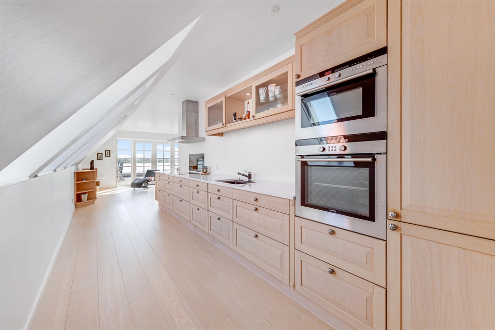 Die in den Osten gelegene Terrasse eignet sich perfekt für ein Sonnenbad auf den Liegestühlen. Ihr könnt euch auf die Gartenmöbel setzen und ein bisschen von oben in die Ferne gucken, während ihr ein Glas Wein genießt. Die in den Westen gelegene Terrasse ist überdacht, und von hier könnt ihr auf das Stadtleben gucken. Ihr sitzt aber gleichzeitig gut abgeschirmt hinter dem Geländer mit Milchglas.