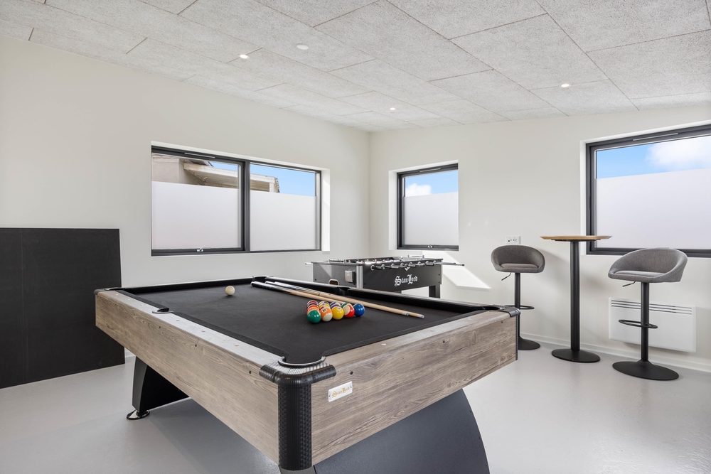 Für Spiel und Spaß im Urlaub sorgt der Aktivitätsraum im Ferienhaus. Der Aktivitätsraum ist mit einem Billardtisch, einem Tischkicker und einer Tischtennisplatte ausgestattet, sodass ihr hier einige Turniere um das Ausräumen der Geschirrspülmaschinen veranstalten könnt.