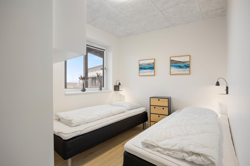 Eure Ferienwohnung bietet Platz für vier Personen und ist ideal für Familien oder kleine Gruppen von Freunden. Zwei gemütliche Schlafzimmer erwarten euch ? eines mit einem komfortablen Doppelbett und das andere mit zwei Einzelbetten. Hier könnt ihr nach einem erlebnisreichen Tag am Strand oder einer aufregenden Fahrradtour wunderbar entspannen. Im Badezimmer sorgt die Fußbodenheizung für ein angenehmes Wohlfühlambiente, besonders an kühleren Tagen.