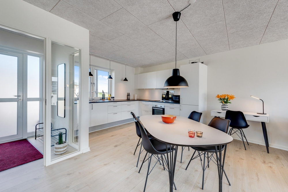 Diese Ferienwohnung strahlt förmlich von innen. Hell und freundlich eingerichtet findet jeder einen Platz auf dem Sofa oder am Esstisch. Es gibt ein offenen Wohn und Essbereich. Vielleicht habt ihr endlich mal Zeit, alle zusammen zu kochen und neben euren Lieblingsspeisen auch neue (dänische) Gerichte auszuprobieren. Am Esstisch könnt ihr euch dann einen netten Abend mit dem leckeren Essen machen und danach einen Brettspieleabend machen. Morgens den ersten Kaffee auf der Terrasse zu genießen, und die ersten Sonnenstrahlen auf der Haut zu spüren ist schon ein gutes Gefühl. Auf dem Sofa könnt ihr den Tag Revue passieren lassen und die nächsten Ausflüge planen. Es gibt einen Chromecast im Haus, sodass ihr hier eure Lieblingsserien streamen könnt. Es gibt keine deutschen Fernsehsender.