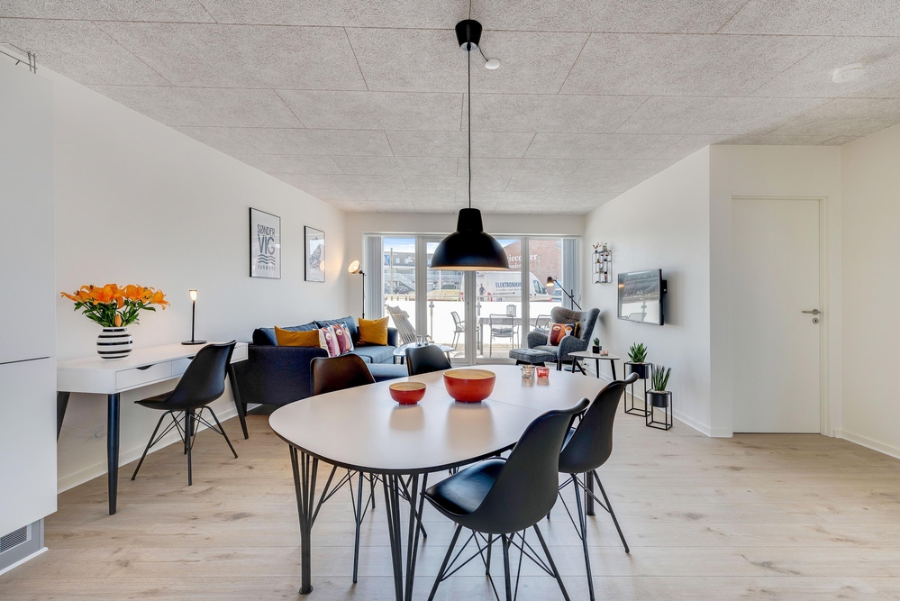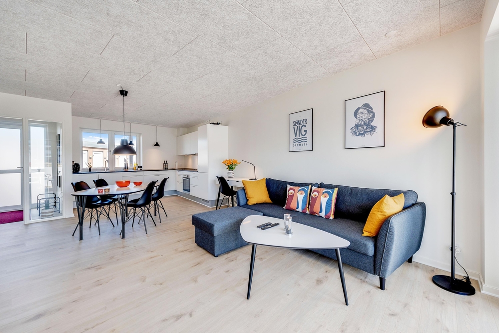 Mit bis zu 6 Personen und 3 Hunden könnt ihr in dieser Ferienwohnung im Lodbergsvej 38 M im Herzen Søndervigs euren Urlaub verbringen. Im schönen dänischen Stil lassen sich hier entspannte und lustige Stunden mit Freunden oder deiner Familie verbringen. Nur kurze Spaziergänge trennen euch sowohl von der nächsten Einkaufsmöglichkeit als auch von der herrlichen Nordsee. Zudem dürft ihr euren Hund gern mitnehmen. Es gibt 2 Schlafzimmer und ein Schlafsofa im Wohnzimmer.