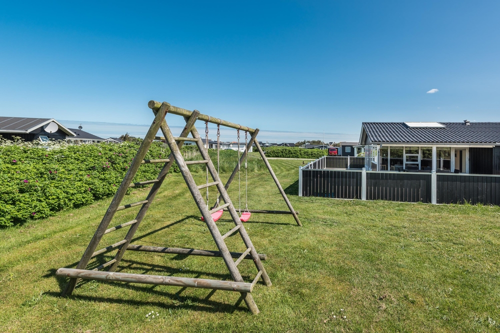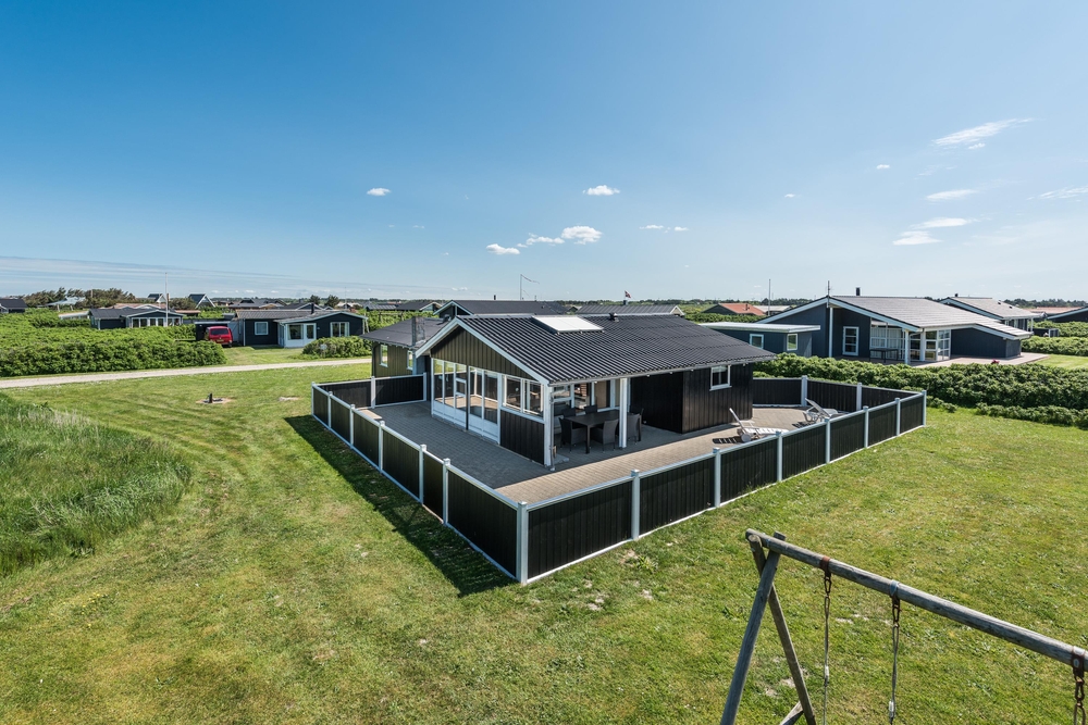 Rund um das Ferienhaus gibt es eine teilweise überdachte, geschlossene Terrasse. Somit könnt ihr möglichst oft draußen sitzen und die frische Luft genießen. Gut abgeschirmt und windgeschützt steht hier einem gemütlichen Grillabend nichts im Wege. Auf dem 1.200 m2 großem Grundstück können die Kinder ausgelassen Ball spielen, im Sandkasten kreativ werden oder schaukeln.