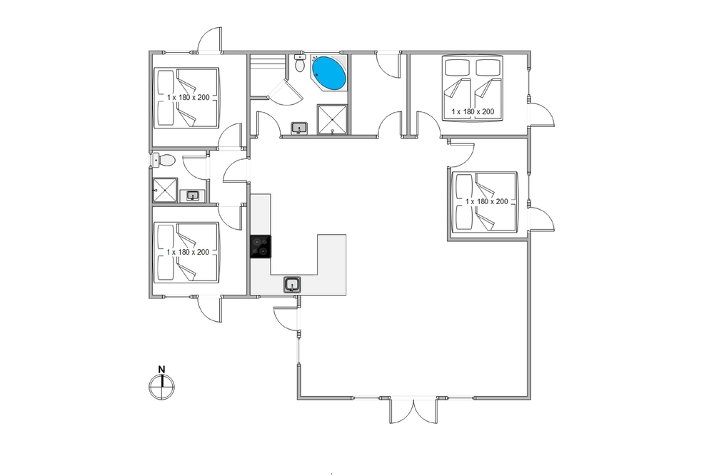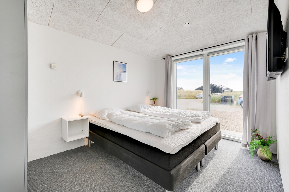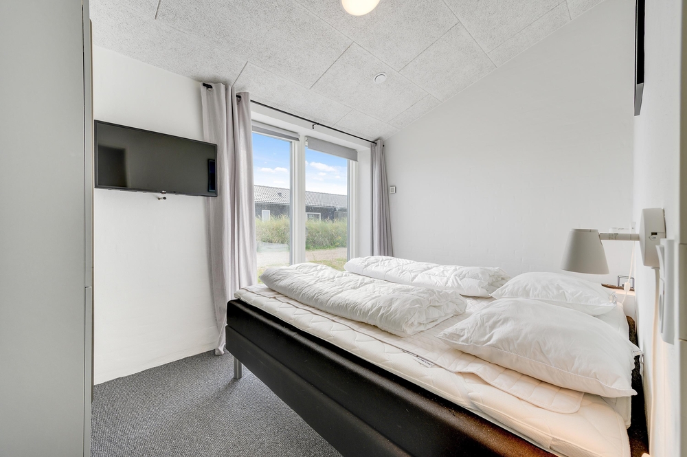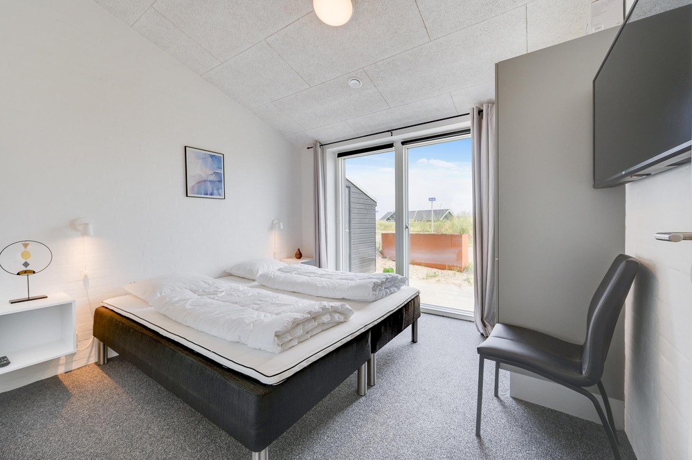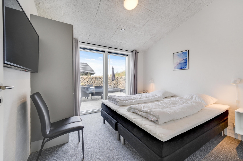 Du kannst dir eines der 4 Schlafzimmer aussuchen, die jeweils mit einem Doppelbett ausgestattet wurden. Das Besondere ist zudem, dass die Schlafzimmer alle eine Terrassentür haben, sodass du gleich am Morgen die frische Luft genießen kannst. Durch die Fußbodenheizung hast du aber immer warme Füße.