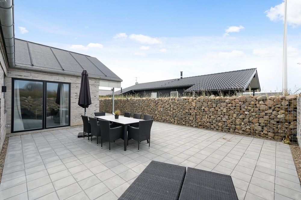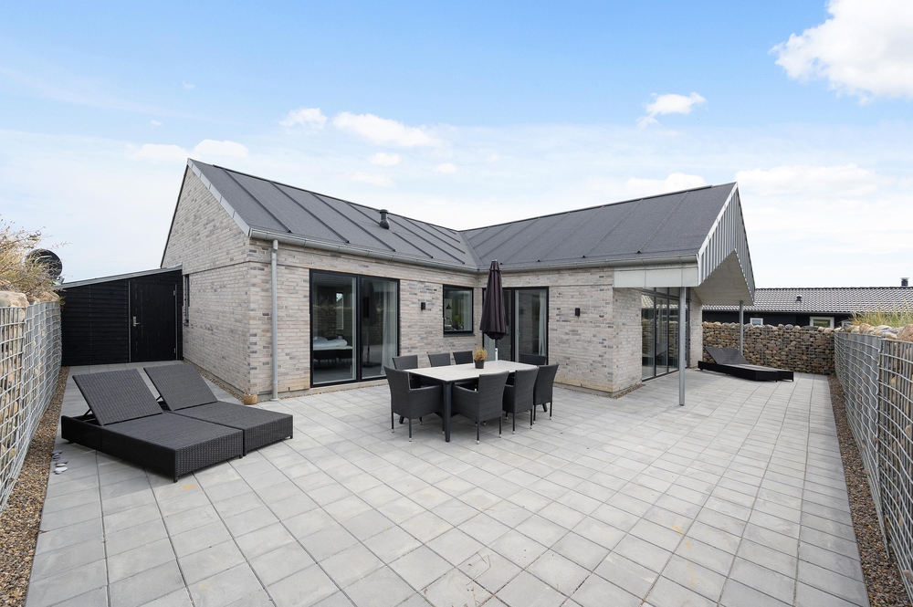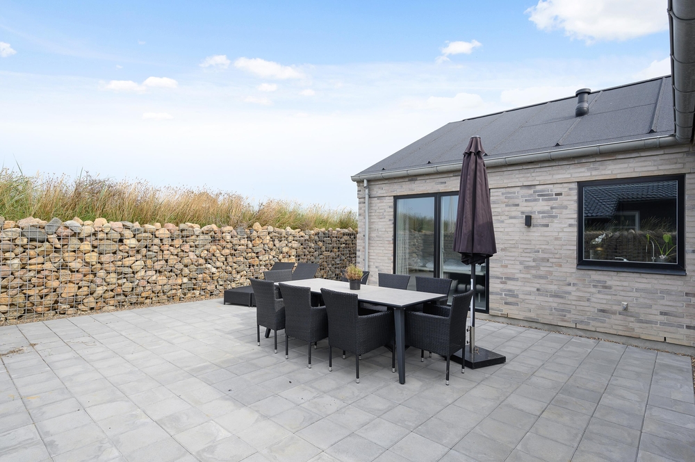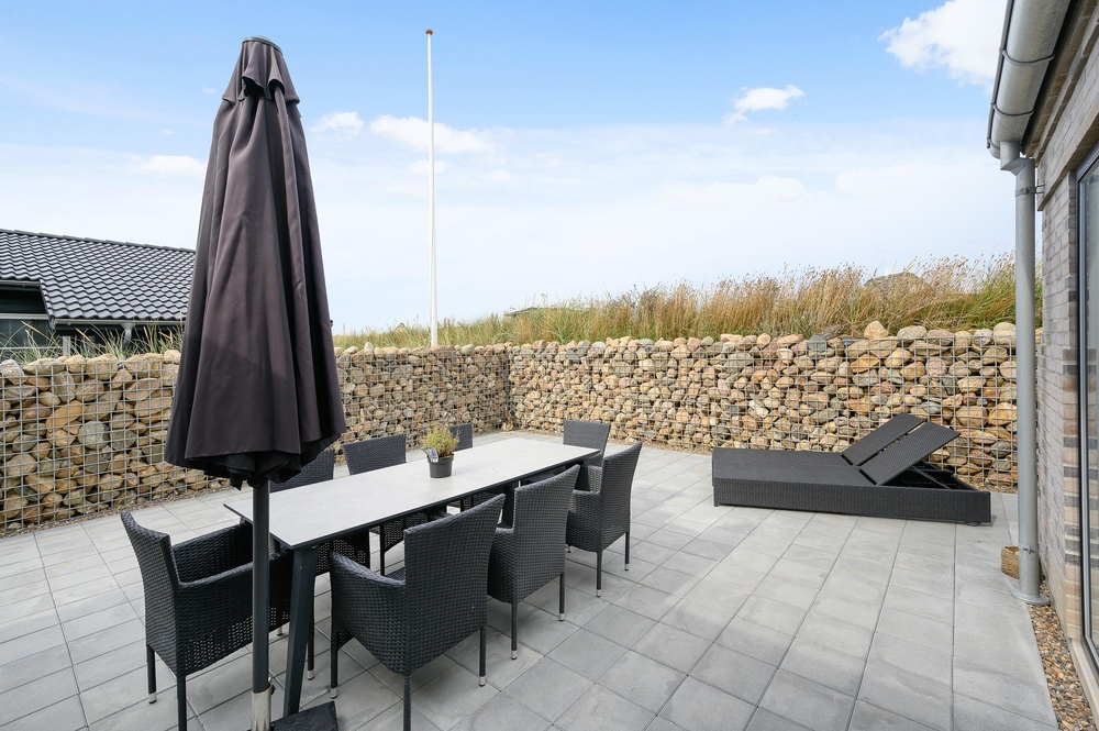 Die Terrasse des Ferienhauses im Lodbergsvej 58 ist vom Wind geschützt und geschlossen, sodass du ohne Bedenken deinen Hund auch auf die Terrasse lassen kannst. Dir stehen wie immer natürlich bequeme Gartenmöbel und Liegestühle zur Verfügung, damit du die dänische Sonne im Sommer genießen kannst. Mit dem Grill könnt ihr die frischen Lebensmittel gleich unter freiem Himmel verarbeiten und ein leckeres Abendessen zubereiten.