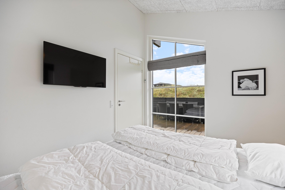 Das Ferienhaus wurde aus hochwertigen Materialien gebaut und wirkt sehr hell, einladend und sehr gemütlich. Es verfügt über 3 große Schlafzimmer, welche alle mit Doppelbetten und TV ausgestattet sind, sowie genügend Stauraum bieten. Darüber hinaus ist der Dachboden mit 2 Matratzen für eure älteren Kinder ausgestattet. Hier kann man sich gegenseitig Geschichten erzählen und dem Sturm lauschen.