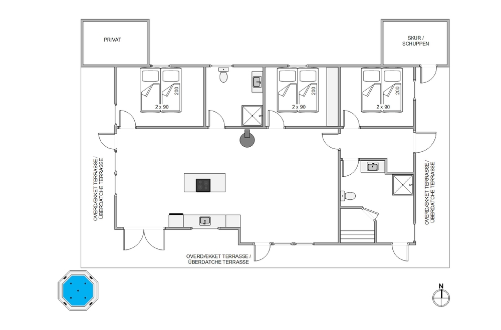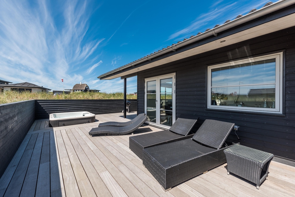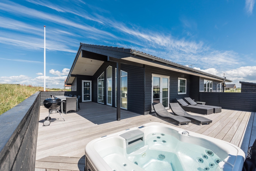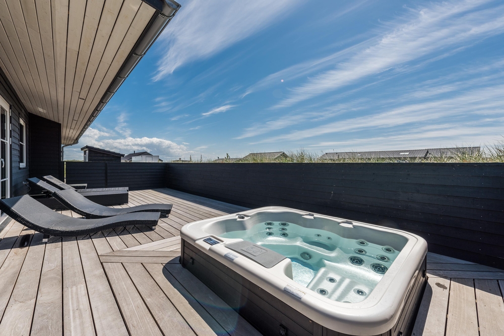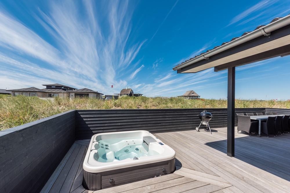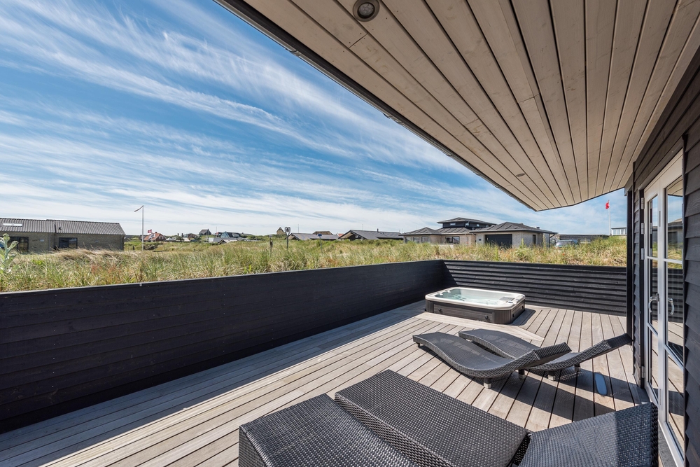 In einem der beiden Badezimmer befindet sich die hauseigene Sauna, wo ihr euch nach einem langen Spaziergang am Strand wieder aufwärmen und entspannen könnt. Von diesem Badezimmer aus habt ihr auch einen Zugang zu der großen Holzterrasse, welche das ganze Haus umgibt. Hier findet ihr auch den Außenwhirlpool in dem die Kinder tagsüber baden und die Erwachsenen abends bei einem Glas Wein unter dem Sternenhimmel entspannen können. Das perfekte Ende eines aktiven Tages!