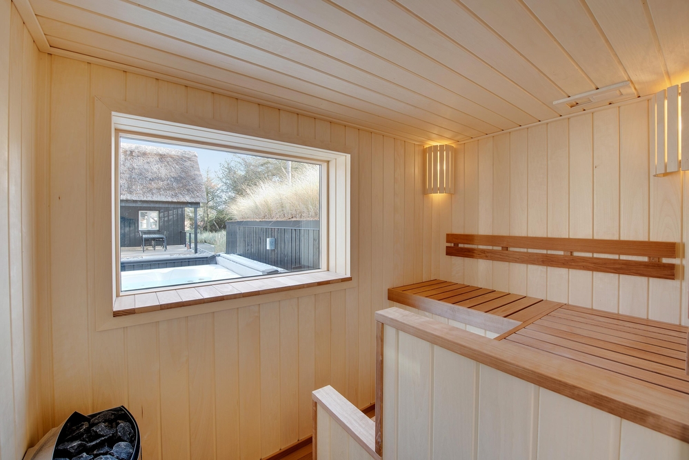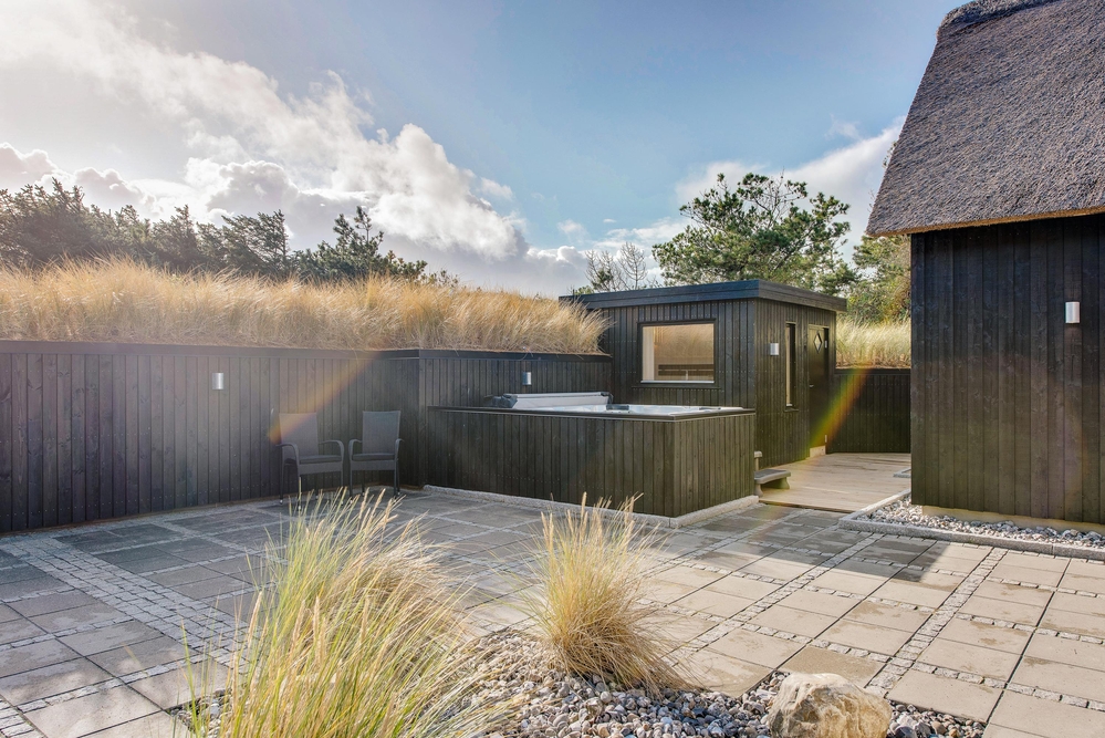 Möchtet ihr in einer komfortablen Umgebung Urlaub machen? Dann gibt es gute Gründe, sich für das Ferienhaus in Søndervig, auf Lodbergsvej 91 zu entscheiden! Das reetgedeckte Ferienhaus wurde im Jahr 2019 erbaut und bietet euch ein modernes und stilvolles Dekor, das alles enthält, was das Urlauberherz begehrt ? Whirlpool drinnen und draussen, eine tolle Außensauna und einen Aktivitätsraum. Auch die Lage des Ferienhauses ist toll, nur wenige Gehminuten vom Zentrum und dem Meer entfernt.