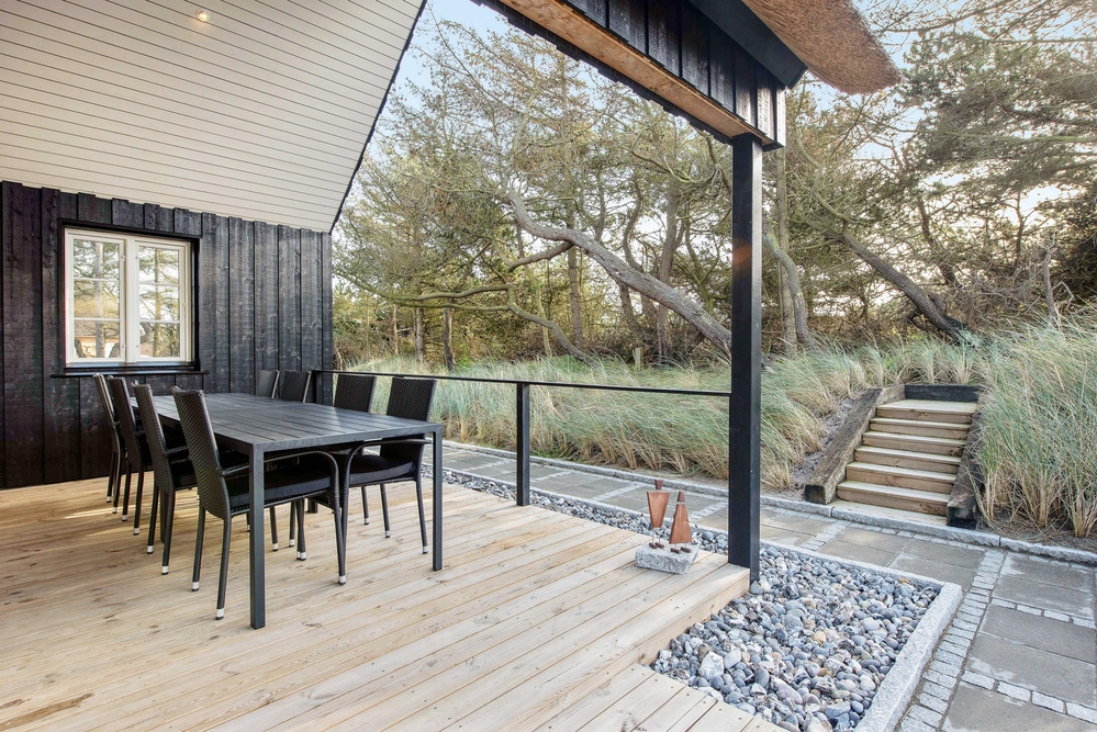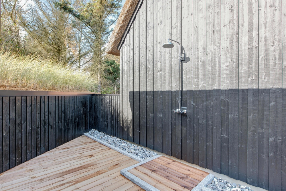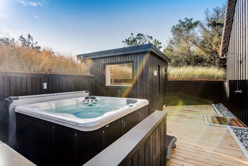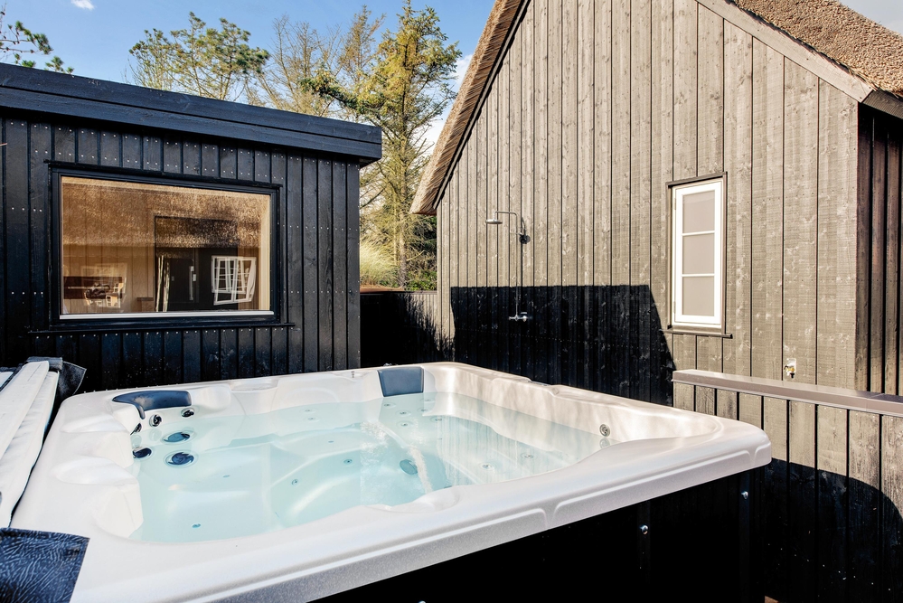 Draußen gibt es eine schöne Terrasse mit einem abgeschirmten und überdachten Teil. Gartenmöbel, Sonnenliegen und Grill stehen bereit, damit ihr eure freien Tage und das gute Wetter in vollen Zügen genießen könnt. Ein besonderes Highlight ist hier der Außenwhirlpool mit Platz für 6 Personen. Die Außendusche ist besonders praktisch, z.B. um Sand und Salz nach dem Strandbesuch abspülen zu können. Diese ist von April-November nutzbar.