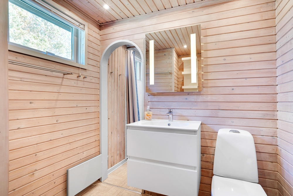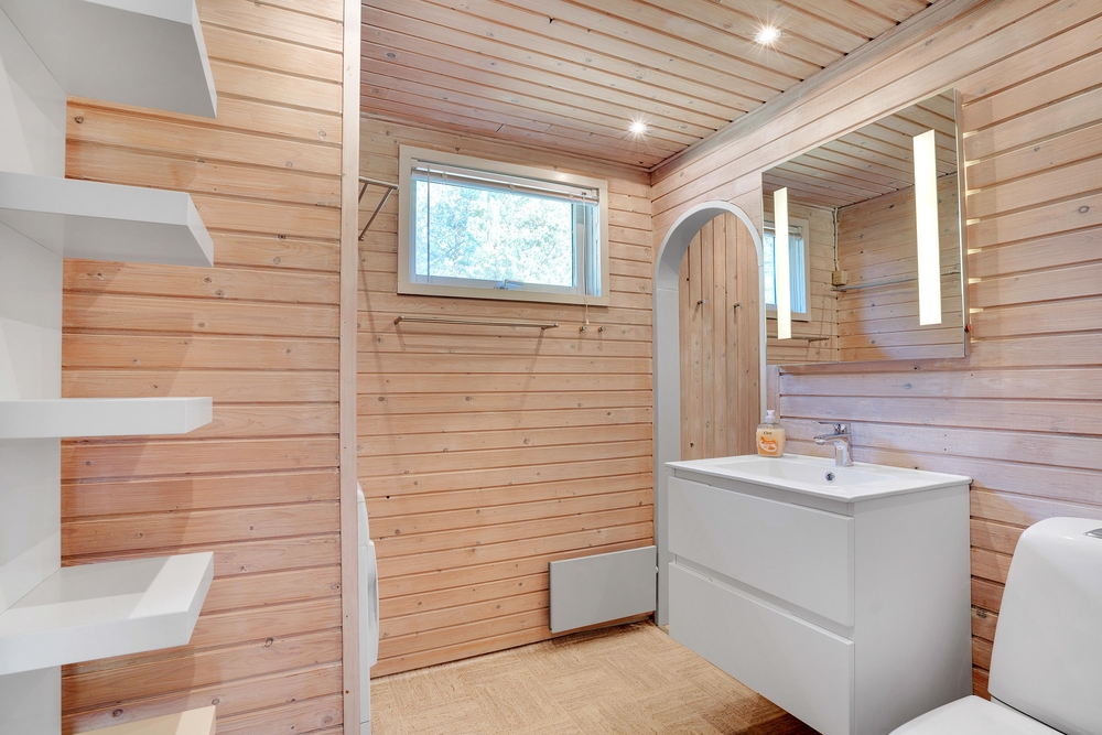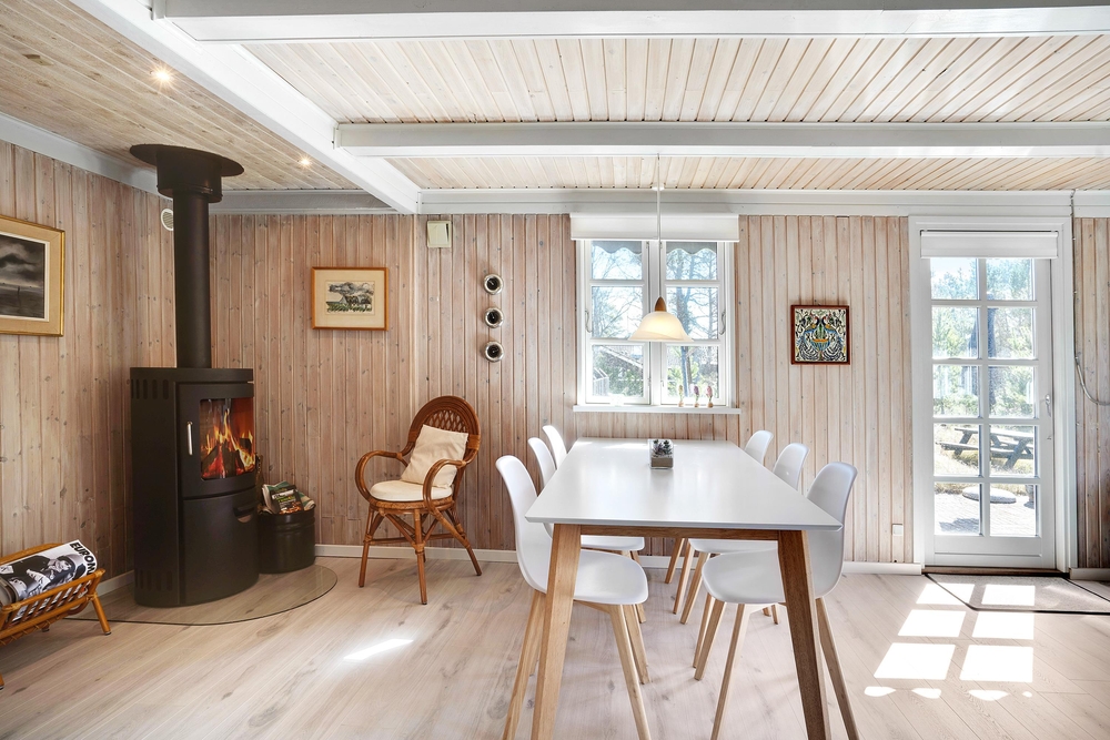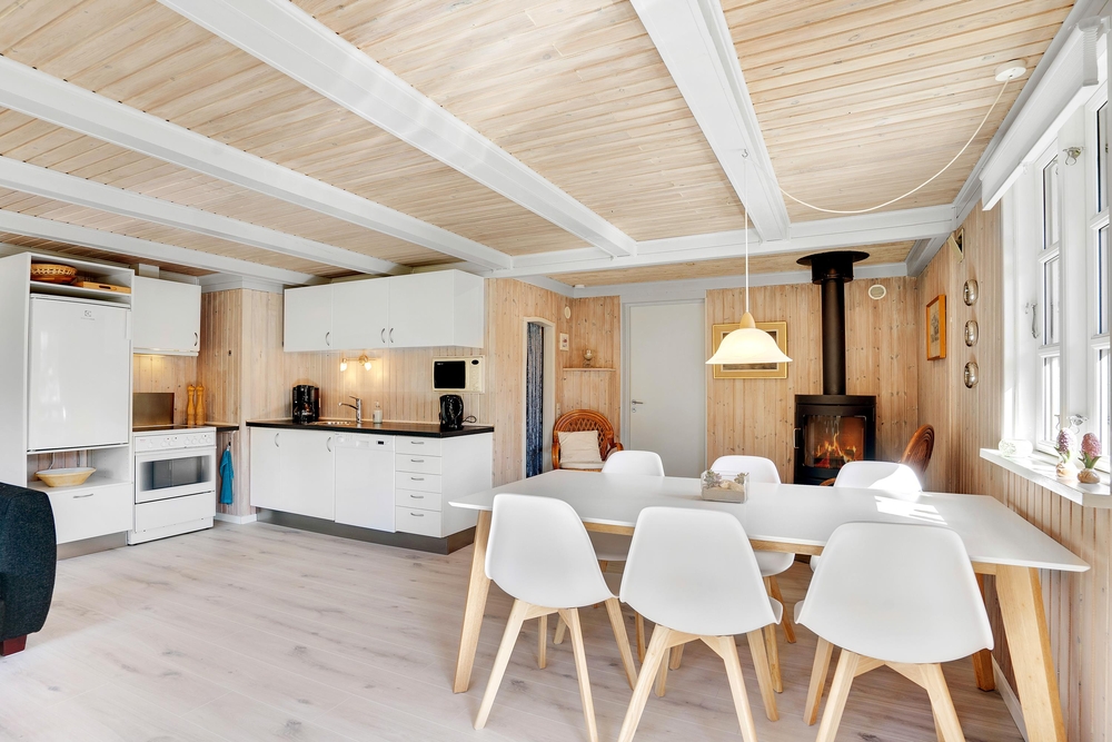 Das kleine Haus strahlt eine unglaubliche Gemütlichkeit aus! Auf insgesamt 77 Quadratmetern stehen euch ein schön und geschmackvoll ausgestattetes Wohnzimmer mit integriertem Essplatz und Küchenzeile zur Verfügung. Durch die helle Holzverkleidung und weis gestrichenen Deckenbalken entsteht eine besonders gemütliche Atmosphäre.