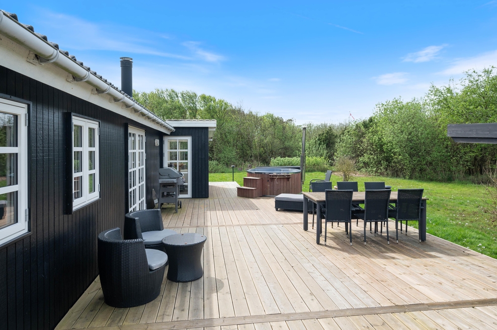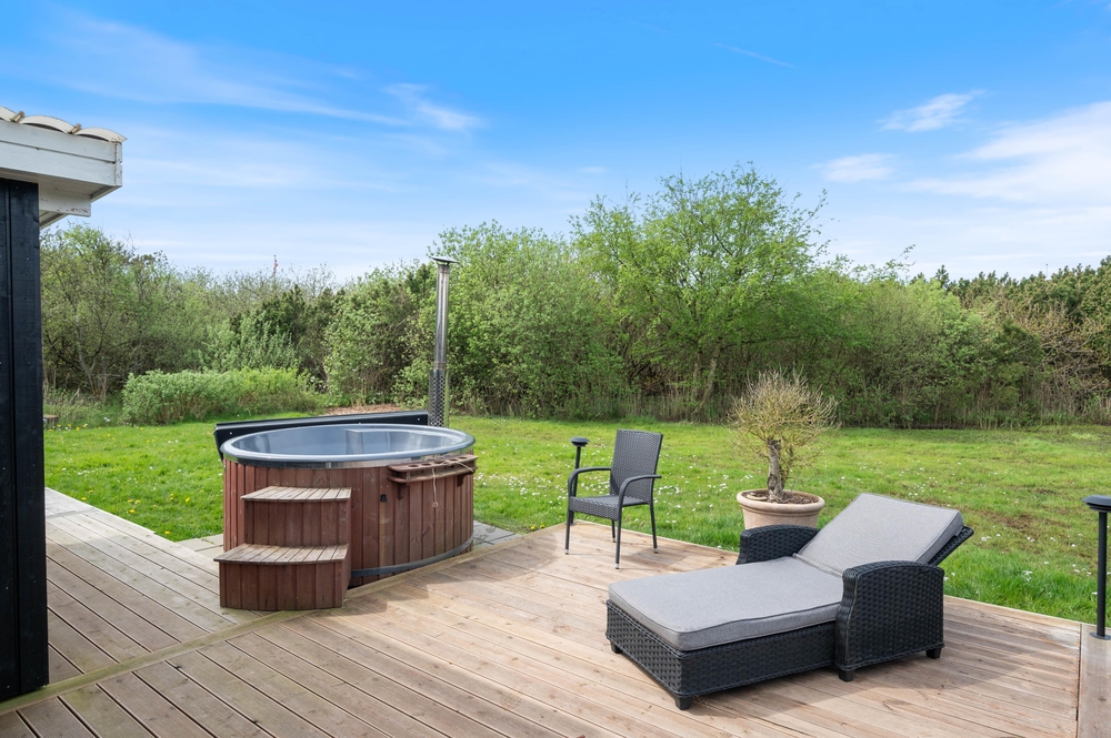Auch auf der Terrasse werdet ihr den Urlaub spüren. Genießt das wohltuende Sonnenbad und lasst euch euer Grillgut schmecken, während sich die Kinder und euer Vierbeiner auf dem Grundstück bestens austoben können. In dieser Atmosphäre schmeckt das köstliche Kaltgetränk umso besser und in der Badetonne könnt ihr dann eure Muskeln so richtig entspannen.