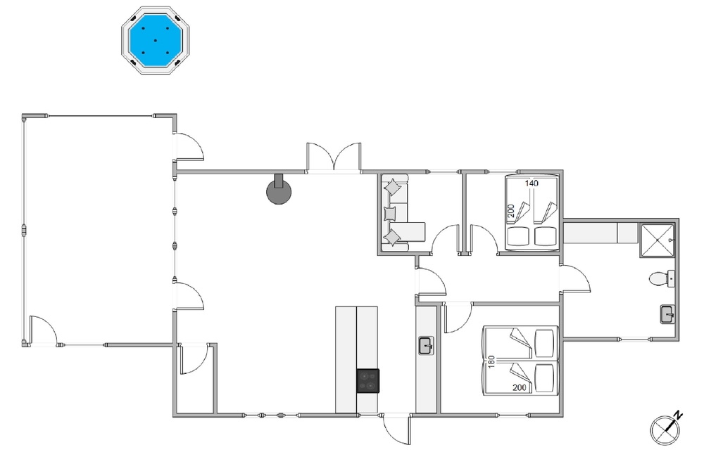 Beim Betreten des Ferienhauses seid ihr direkt im Urlaub angekommen. Der offene Wohn- und Essbereich mit der ebenfalls offenen Küche bildet das Zentrum des Hauses und lädt euch zum Wohlfühlen ein. In den 3 vorhandenen Schlafzimmern findet ihr erholsamen Schlaf, um voller Energie in den nächsten spannenden Urlaubstag zu starten. Zwei der Schlafzimmer sind jeweils mit einem Doppelbett ausgestattet, während ihr im 3. Schlafzimmer ein Schlafsofa findet.