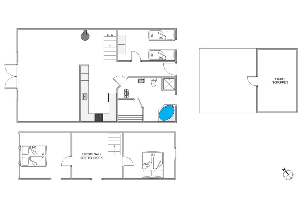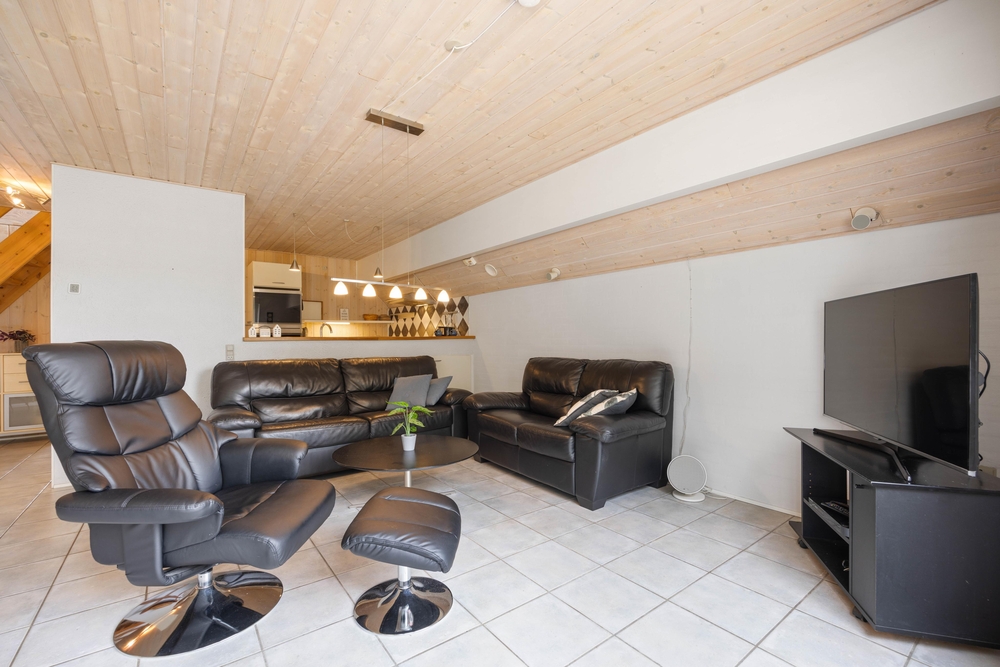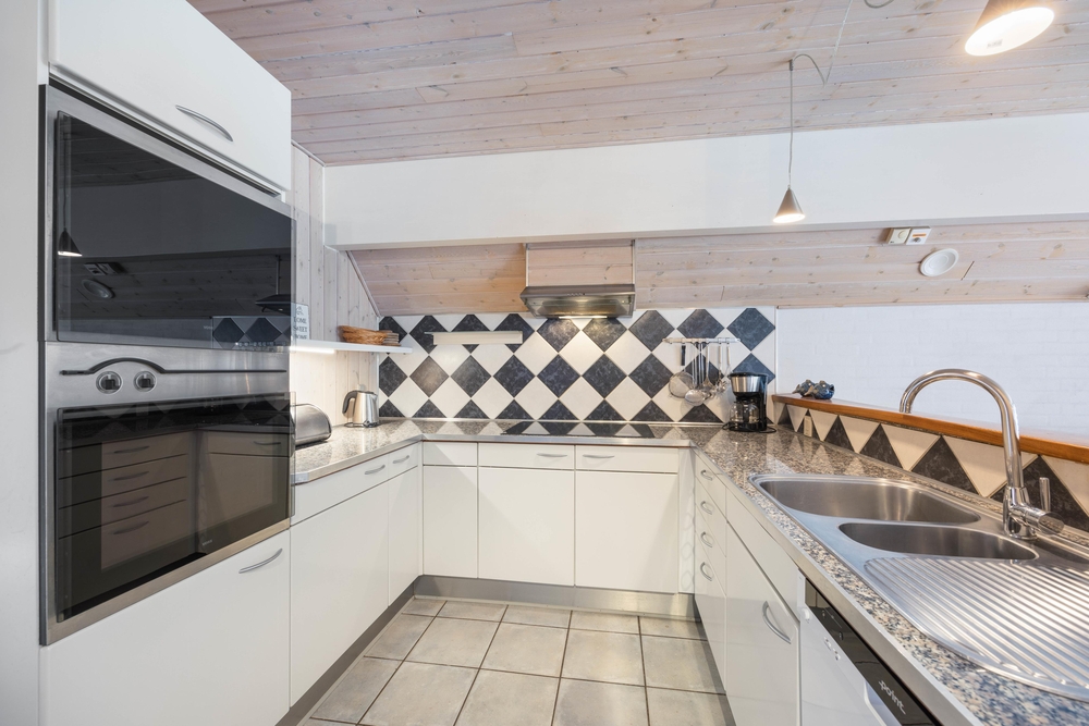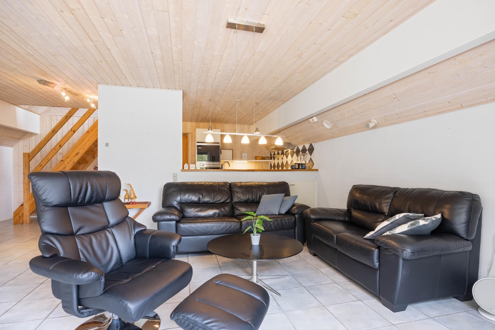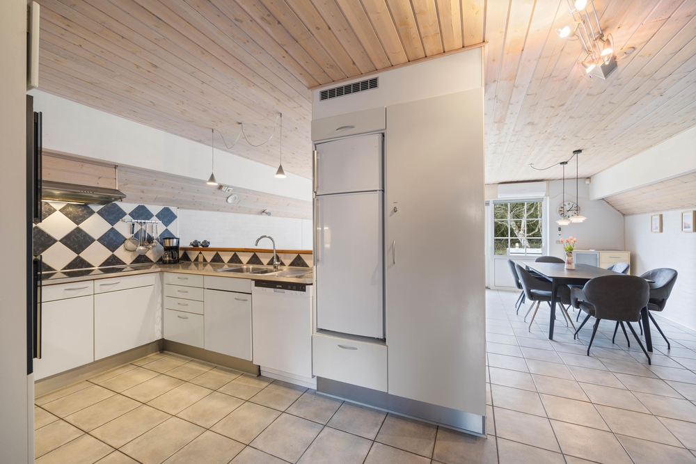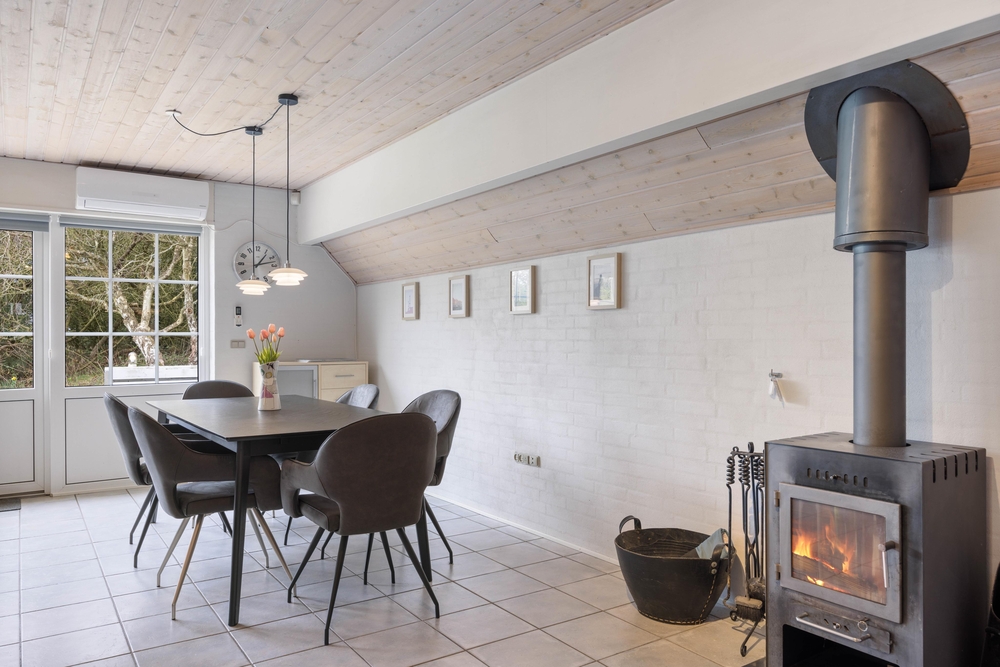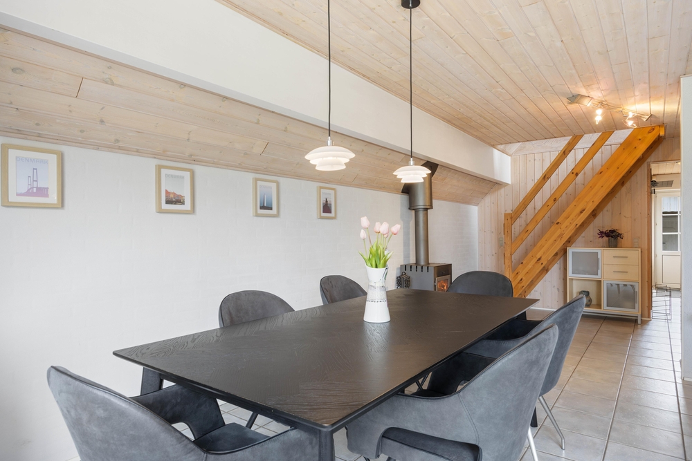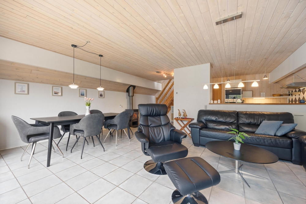 Das Ferienhaus begrüßt euch mit einem offenen und hellen Wohnraum, der euch viel Platz bietet, gemeinsame Zeit zu verbringen. Die Küche ist gut ausgestattet und der Geschirrspüler erledigt den lästigen Abwasch, während ihr zusammen am Esstisch sitzt und eure nächsten Aktivitäten plant. Für die kühlere Jahreszeit sorgt die energiesparende Luft-zu-Luft Wärmepumpe für ein angenehmes Raumklima. Wenn ihr es klassisch mögt, dann steht euch ein Holzofen zur Verfügung, der seine eigene Urlaubsatmosphäre zaubert.