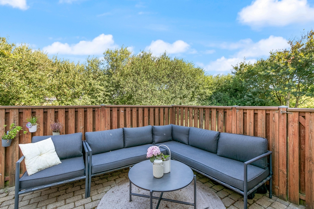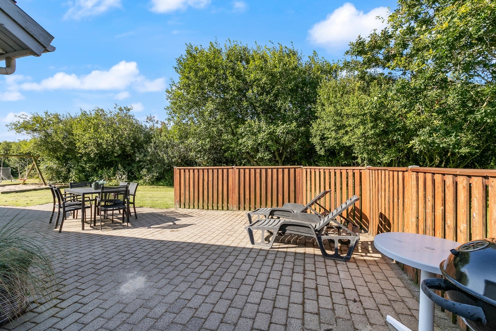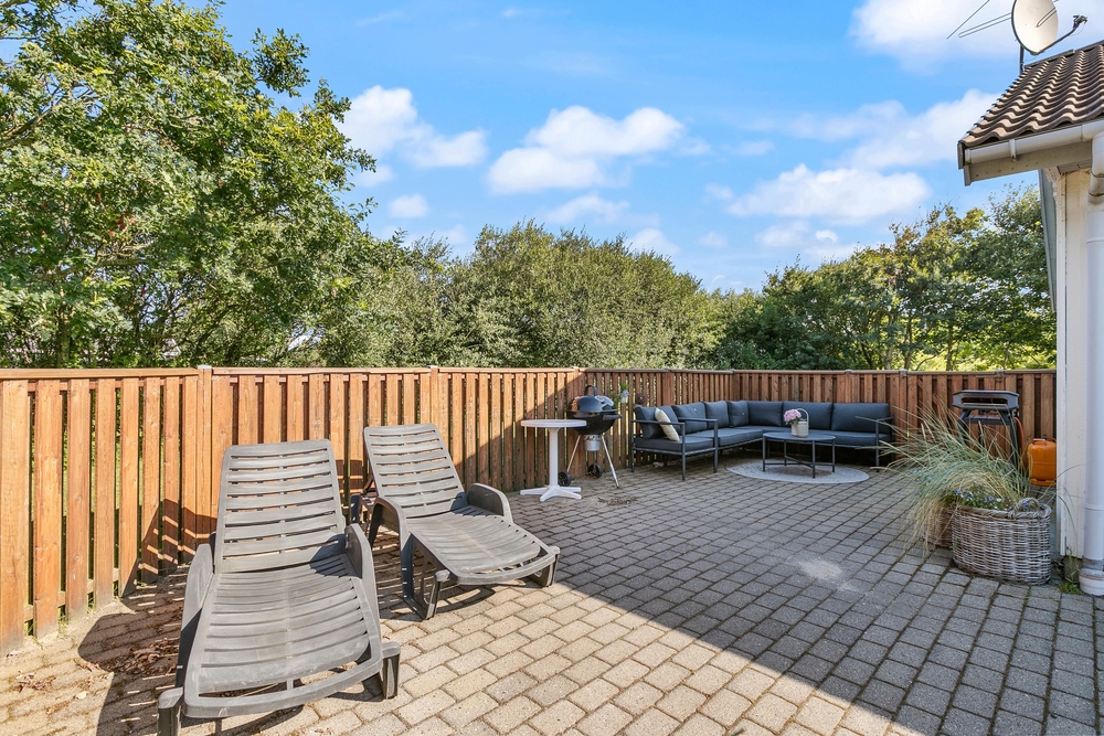 Die Terrasse verläuft um das ganze Haus, aber ist am großten nach Osten, Süden und Südwesten, wo sie auch teilweise eingezäunt ist. Hier könnt Ihr wirklich gemütliche Tage und Grillabende mit der Familie und Freunden verbringen.