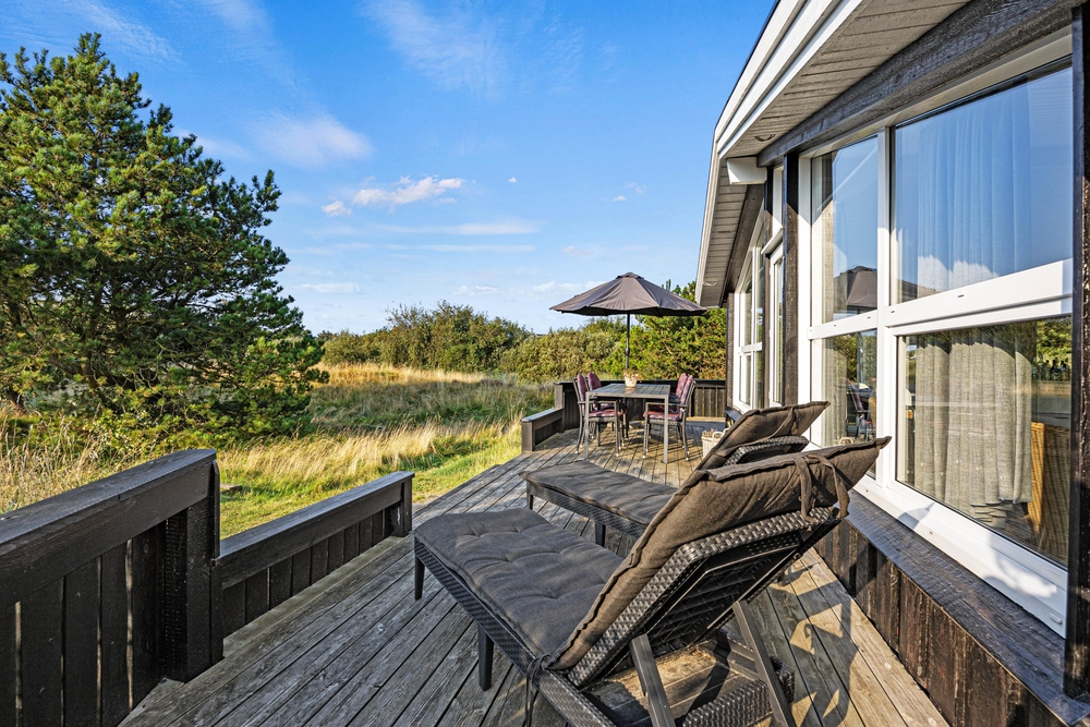 Auf einem ca. 2700 qm großen, hügeligen Naturgrundstück befindet sich euer schönes Ferienhaus. Die teils abgeschirmte Terrasse ist mit bequemen Gartenmöbeln ausgestattet. Hier könnt ihr je nach Sonnenstand und Windrichtung stets ein windgeschütztes Plätzchen finden.