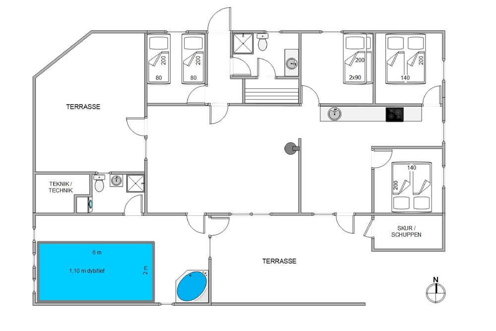 Das in 2020 teilweise renovierte und modernisierte Ferienhaus mit Pool bietet euch die Möglichkeit, schöne und aktive Ferien in Dänemark zu verbringen. Ein Whirlpool und eine Sauna ergänzen die Zutaten für einen Bade- und Wellnessurlaub unabhängig von der Jahreszeit ? hier könnt ihr das ganze Jahr über schwimmen und euch verwöhnen!