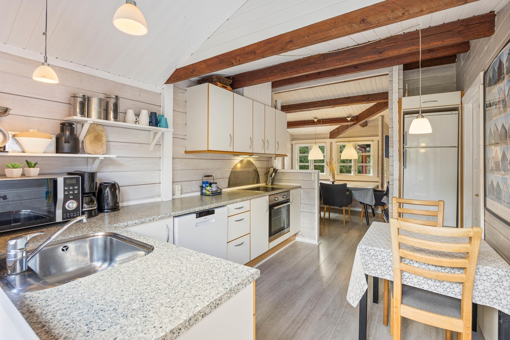 In diesem gemütlichen Ferienhaus kannst du mit deiner Familie einen entspannten Urlaub verbringen. Die gut ausgestattete Küche ist mit im Wohnraum integriert, sodass auch der ?Koch? der Familie immer am Geschehen teilhaben kann.