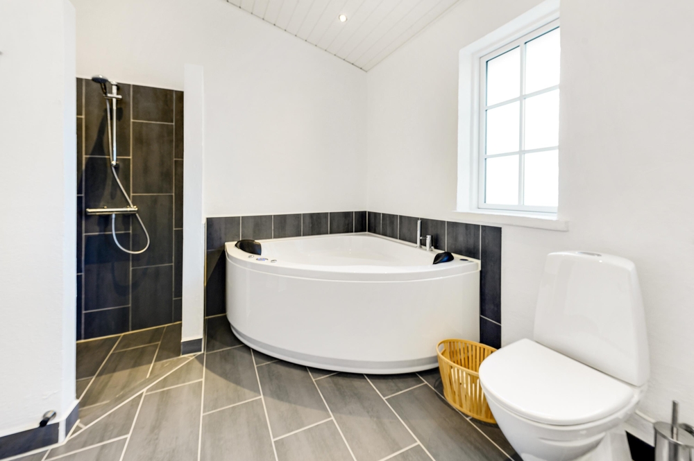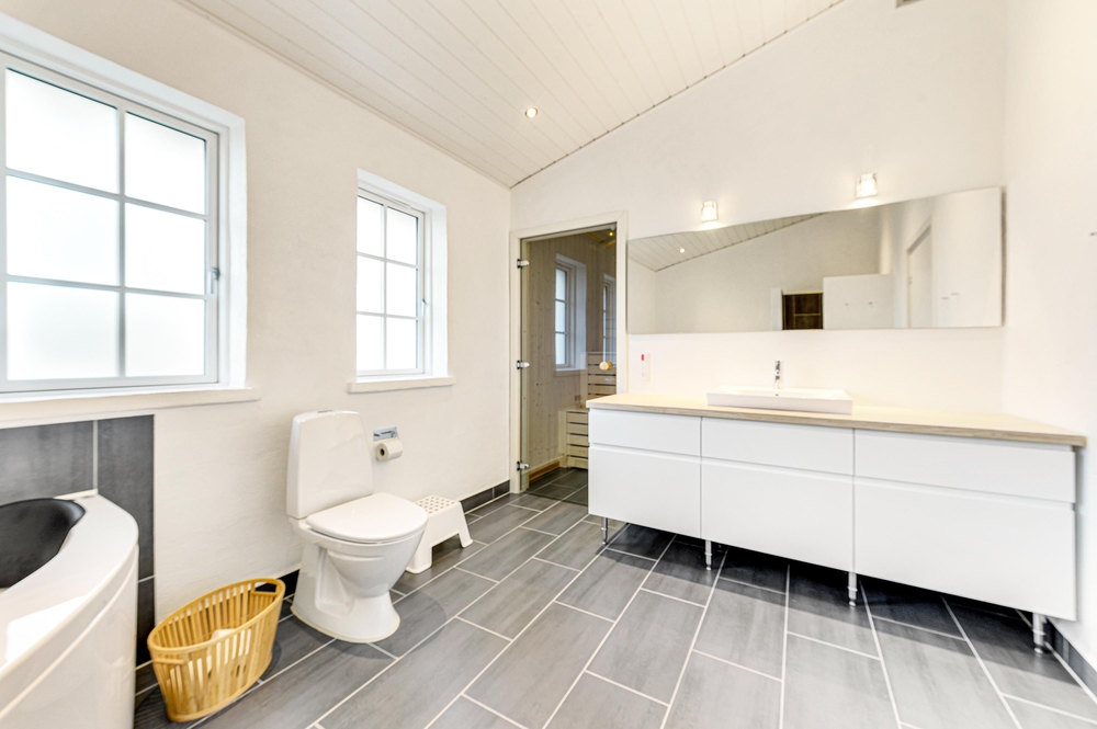 Du möchtest im Urlaub deine Seele so richtig baumeln lassen? Im großen Badezimmer mit Fußbodenheizung findest du den Whirlpool für 2 Personen und den Eingang zur Sauna. Nach einem langen Tag und vielen Stunden an der frischen Luft ist dies der perfekte Ort, um sich wieder aufzuwärmen und den Tag perfekt abzuschließen.