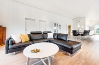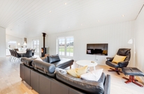 Es gibt einen zentralen Raum im Ferienhaus, der das Herzstück des Hauses darstellt. Hier wurden Wohnzimmer, Essbereich und Küche zusammengeführt, sodass ihr so viel Zeit wie nur möglich miteinander verbringt. Die große Sofaecke ist der perfekte Platz, um gemütlich am Morgen mit einer Tasse Kaffee ein Buch zu lesen. Abends kannst du dann am Esstisch Platz nehmen, um mit allen 6 Personen zu Abend essen.