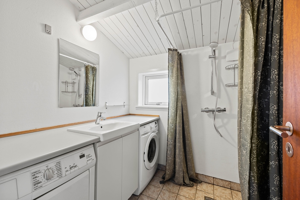 Das Badezimmer mit Waschbecken, Dusche, Waschmaschine und Trockner ist praktischerweise getrennt von der Toilette. Diese befindet sich gleich im nebenan. Nachdem die Betten in den 3 zur Verfügung stehenden Schlafzimmern verteilt worden sind, könnt ihr entspannt die Erkundungstour im Außenbereich fortsetzen.